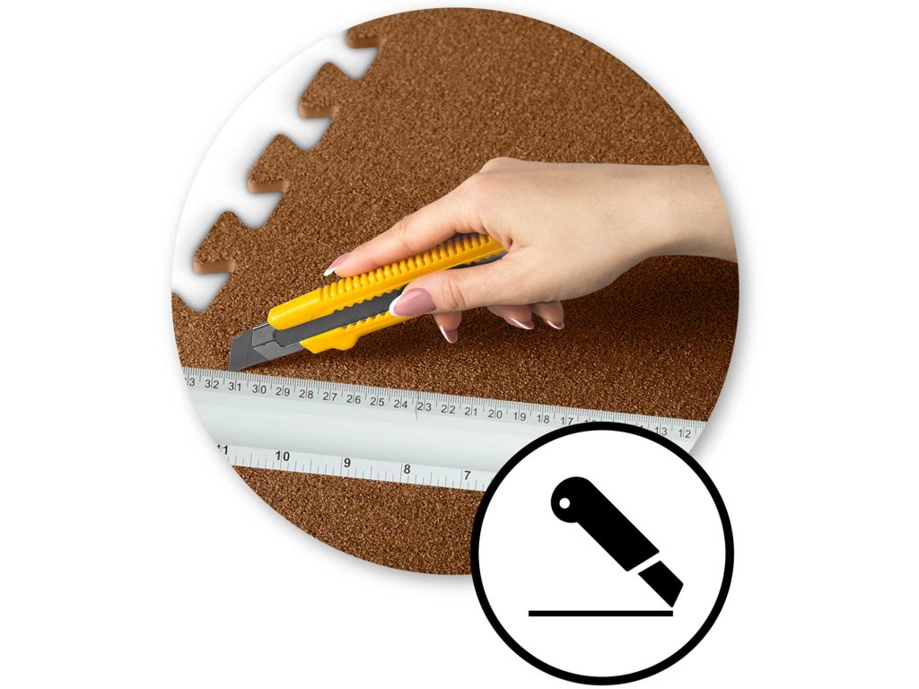 Postupak rezanja je jednostavan i ne zahtijeva posebne alate. Sve što vam treba je nož za tapete ili oštre škare za brzo i točno prilagođavanje prostirke sobi.