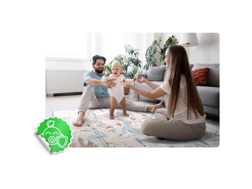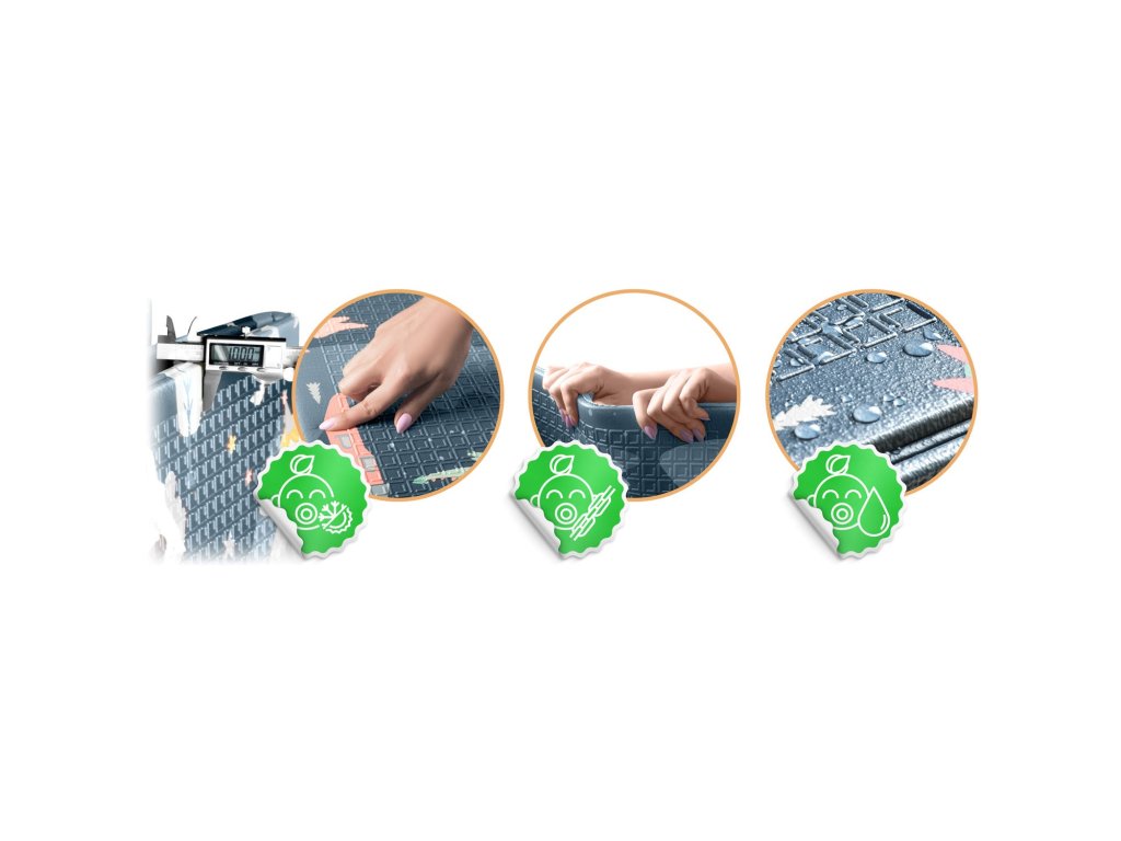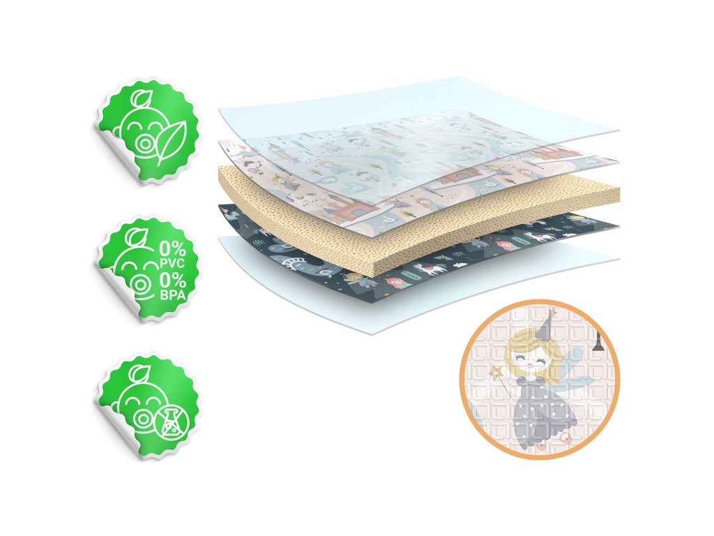 Izrađeno od XPE pjene najviše kvalitete bez mirisa, sigurno za vaše dijete. Vrlo debela pjena (1 cm!) ublažava pad na tvrdi pod.