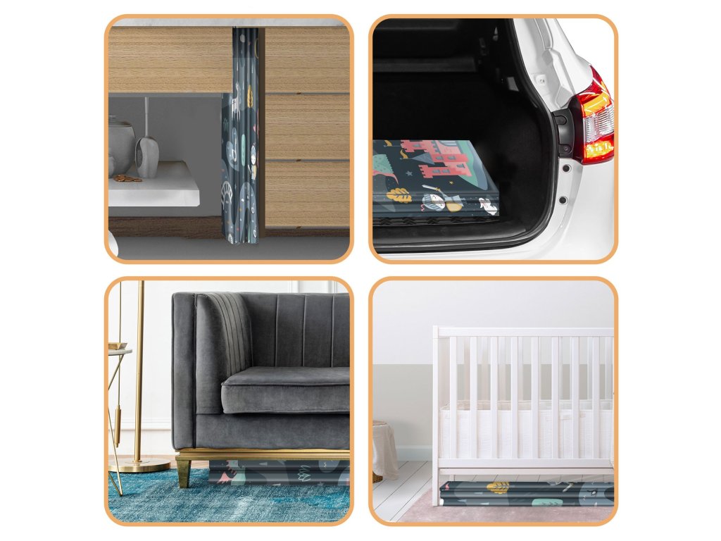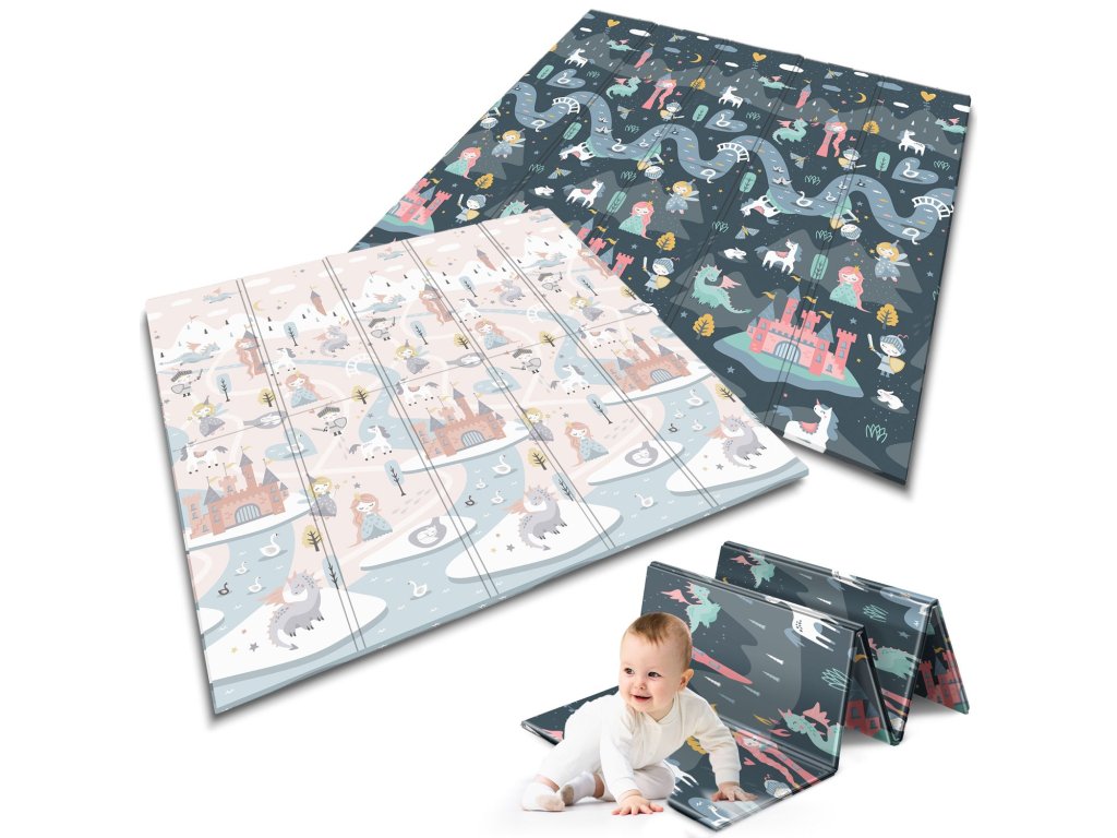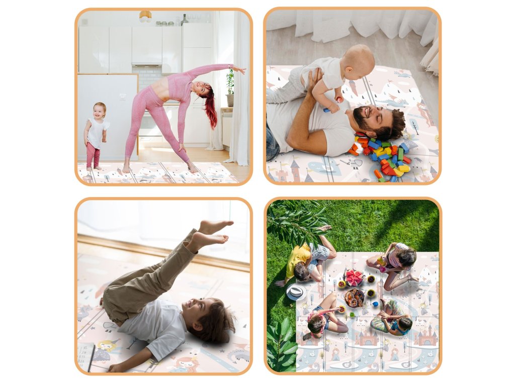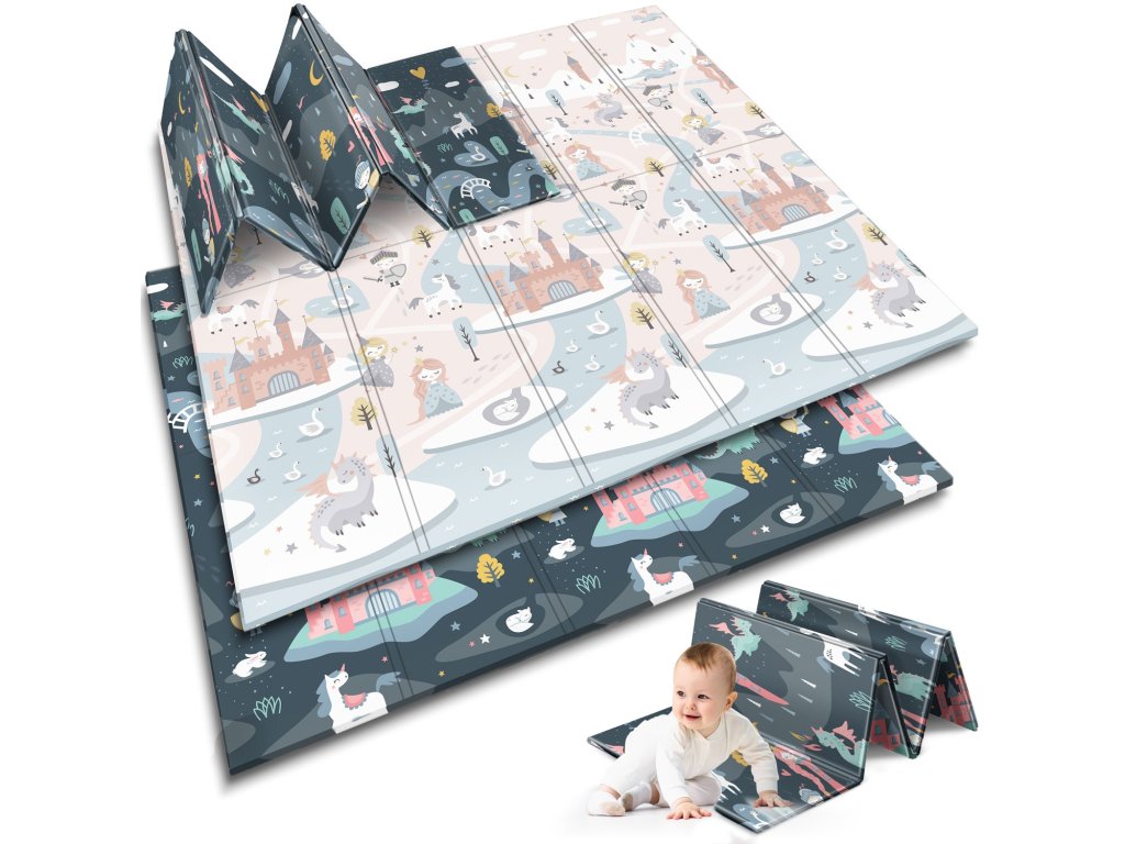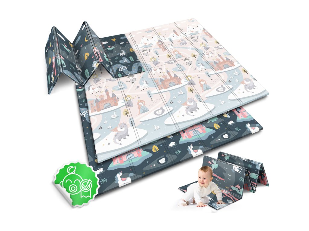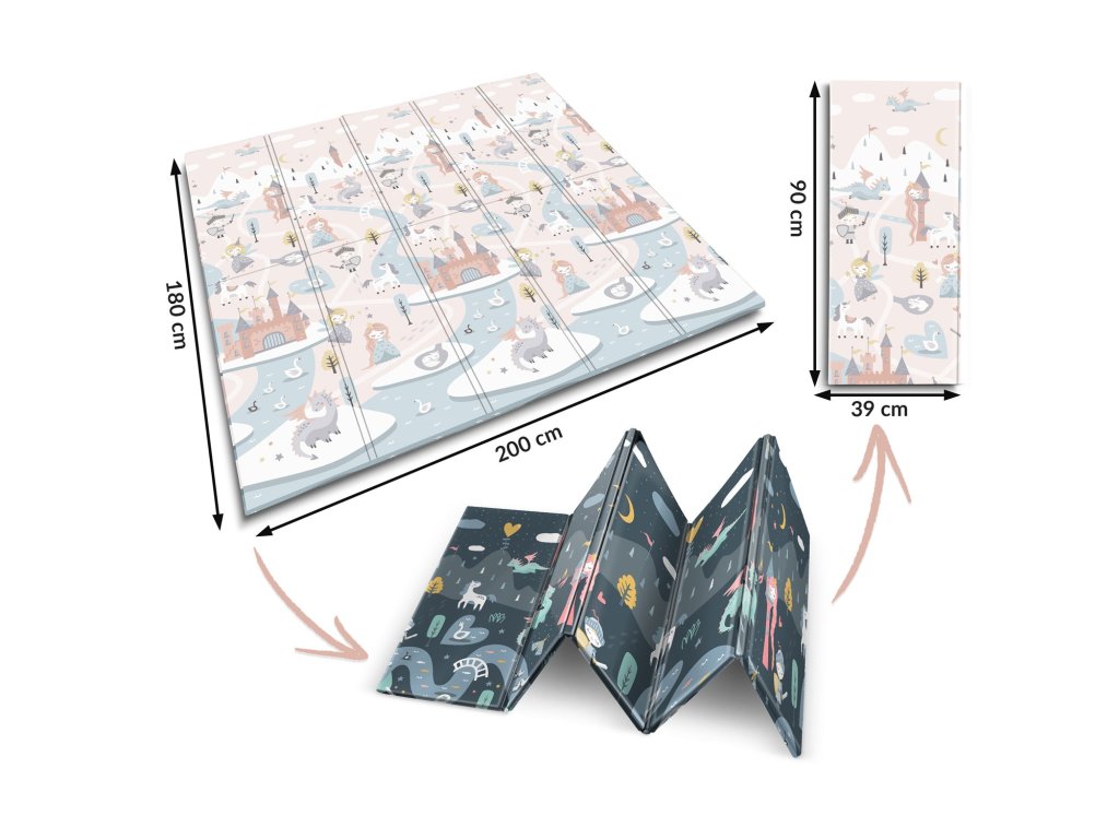 Ova jedinstvena velika sklopiva prostirka s dimenzijama 200 x 180 cm ima mnogo praktičnih upotreba. Pruža vašem djetetu udobnost pri igri i učenju puzanja!