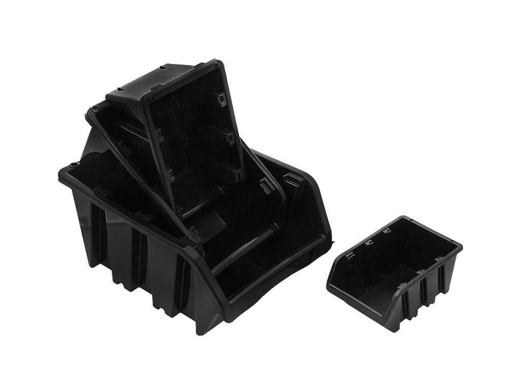 Plastična kutija 160x230x120 NP10 crnaKutije i spremnici su praktično i estetsko rješenje za širok spektar primjena. Idealni su za skladištenje sitnih predmeta u skladištu, radionici, garaži ili za izlaganje robe u trgovini. Zahvaljujući njihovoj promišljenoj konstrukciji, mogu se slagati ili montirati na zid pomoću posebnih montažnih tračnica ili montažne ploče.