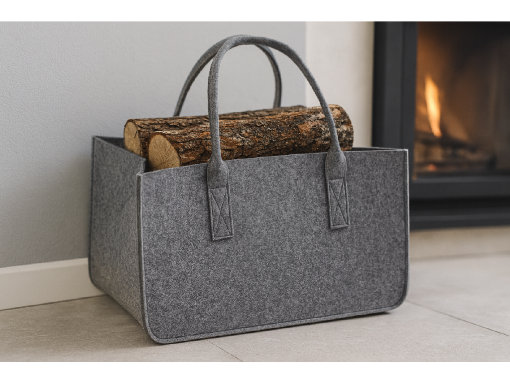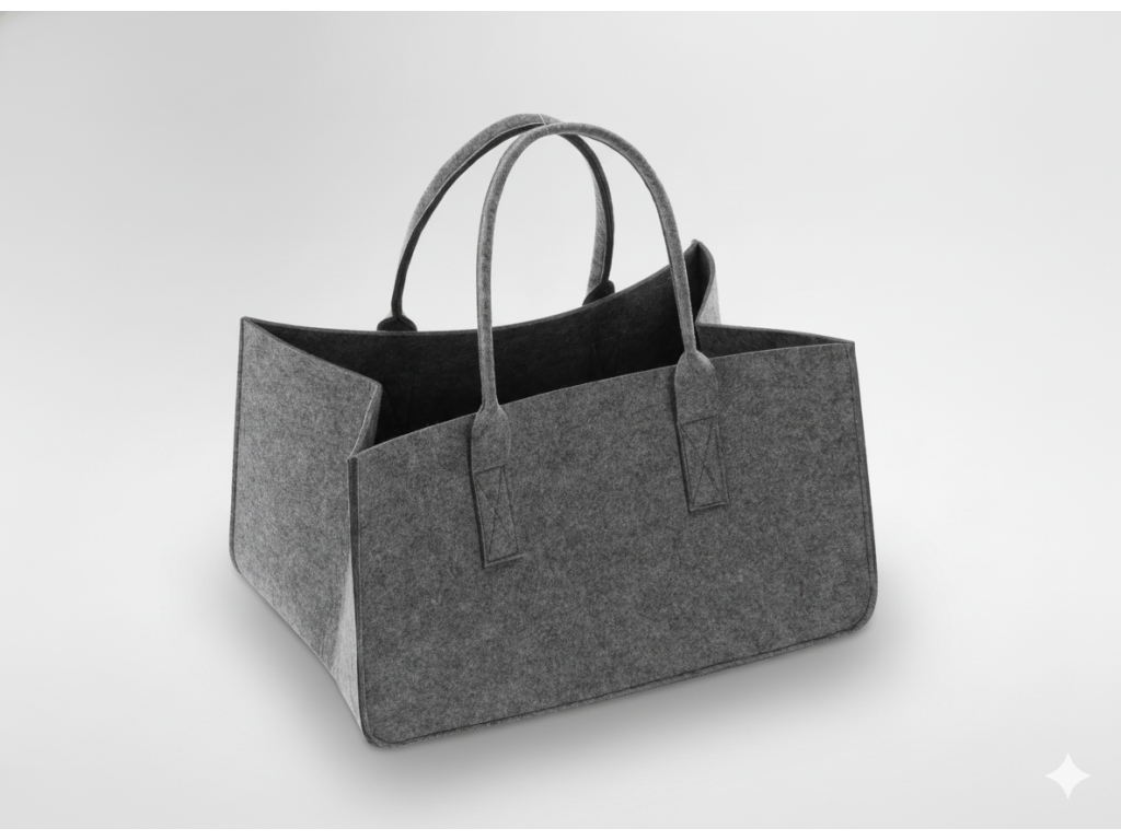 Univerzalna i praktična torba od filca. Idealno je pogodna za nošenje drva za kamin, kao i za prijevoz namirnica u prtljažniku. Uspješno je možete ponijeti na plažu ili piknik i spremiti različite stvari. Torba ima čvrste ručke.