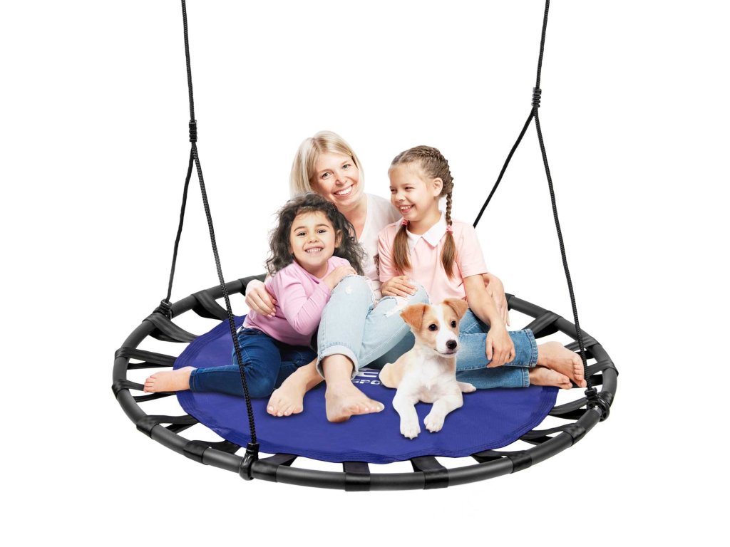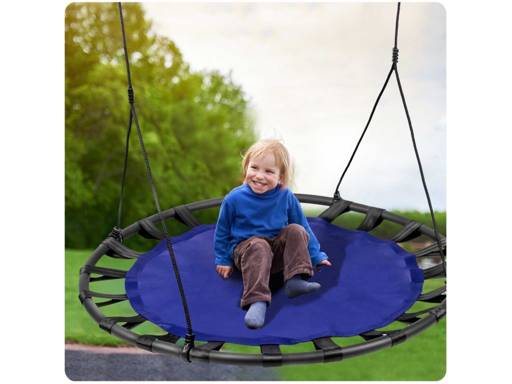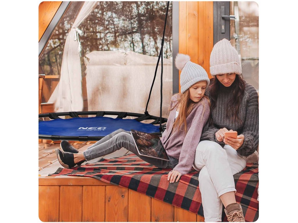 To je izvrsna zabava za mlađe i malo starije. Ljuljačka na čeličnom okviru prekrivenom mekom zaštitnom pjenom, izrađena od čvrstog materijala s višestrukim šavovima te debelim visećim užadima. Pruža sigurnost, stabilnost i izdržljivost. Poliester Oxford 600D, od kojeg je sjedalo izrađeno, je vodootporan i lako se čisti.