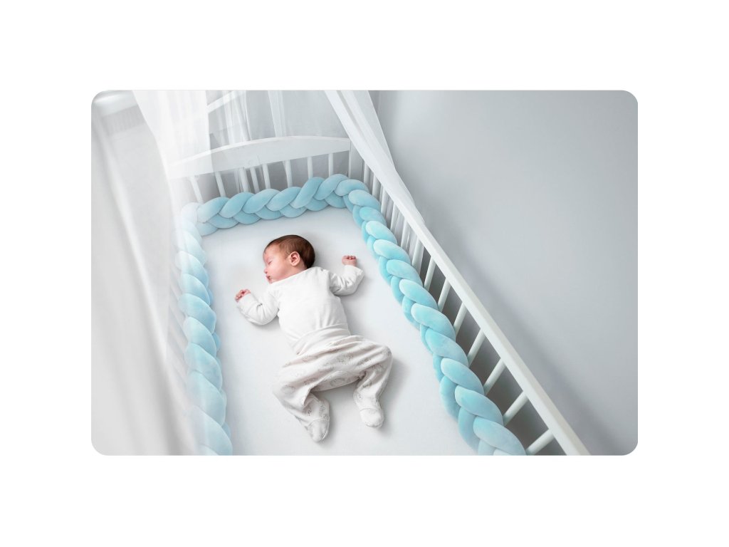 Pleteni obrubnik za dječji krevetić 3m - plavi