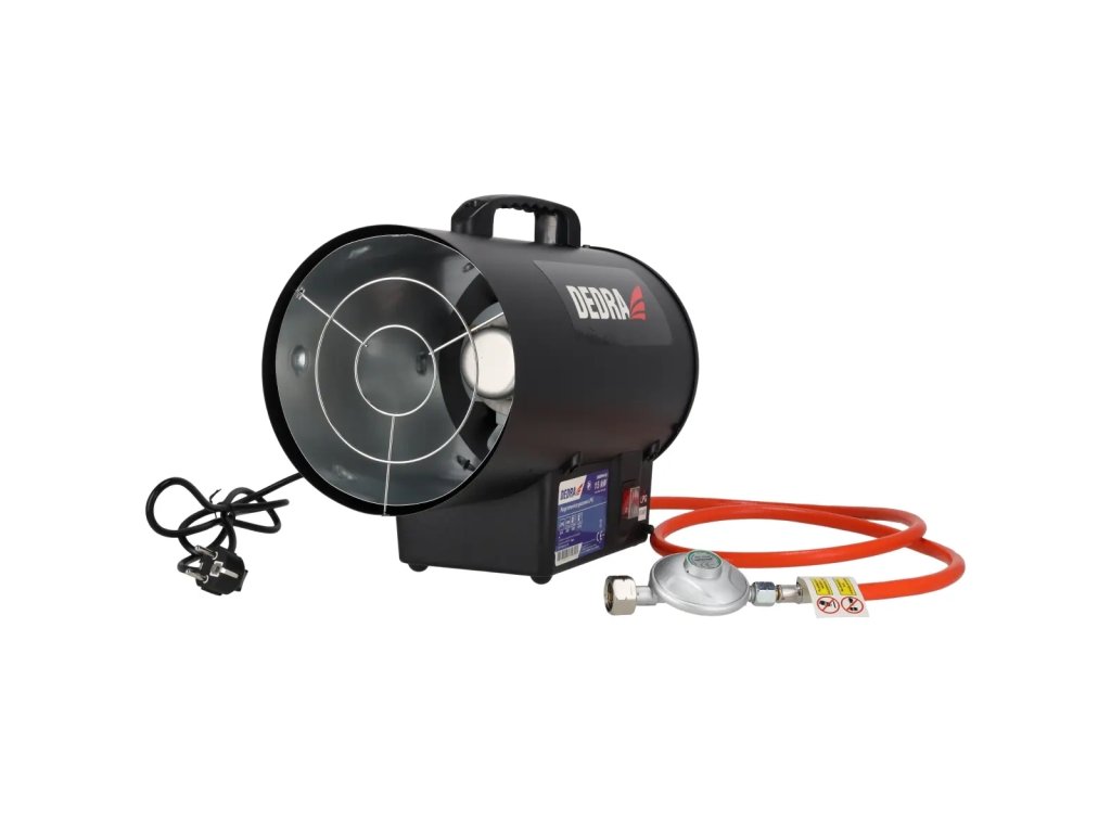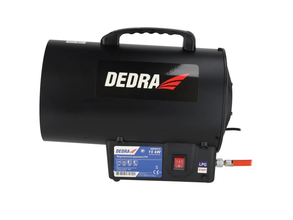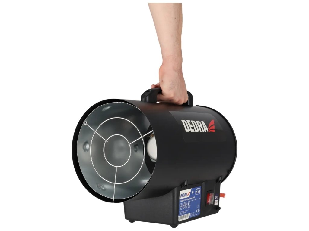 Plinski grijač DED9941A uređaj je namijenjen za korištenje u zatvorenim prostorima. Koristi se za grijanje ne-stambenih prostora, kao što su radionice, skladišta, proizvodne hale, staklenici ili za popravke i građevinske radove. Grijač je pokretan propan-butanom (G30). Uređaj se može koristiti samo u prostorijama s učinkovitim prozračivanjem. Metalni kućište ne zagrijava se ni tijekom dugog rada. Metalno kućište ne zagrijava se ni tijekom dugog vremenskog perioda. U kompletu dolazi i posebna cijev i crijevo. Zahvaljujući standardnoj ručki, lako se prenosi i transportira.Ovaj proizvod se ne smije koristiti kao primarni izvor grijanja.