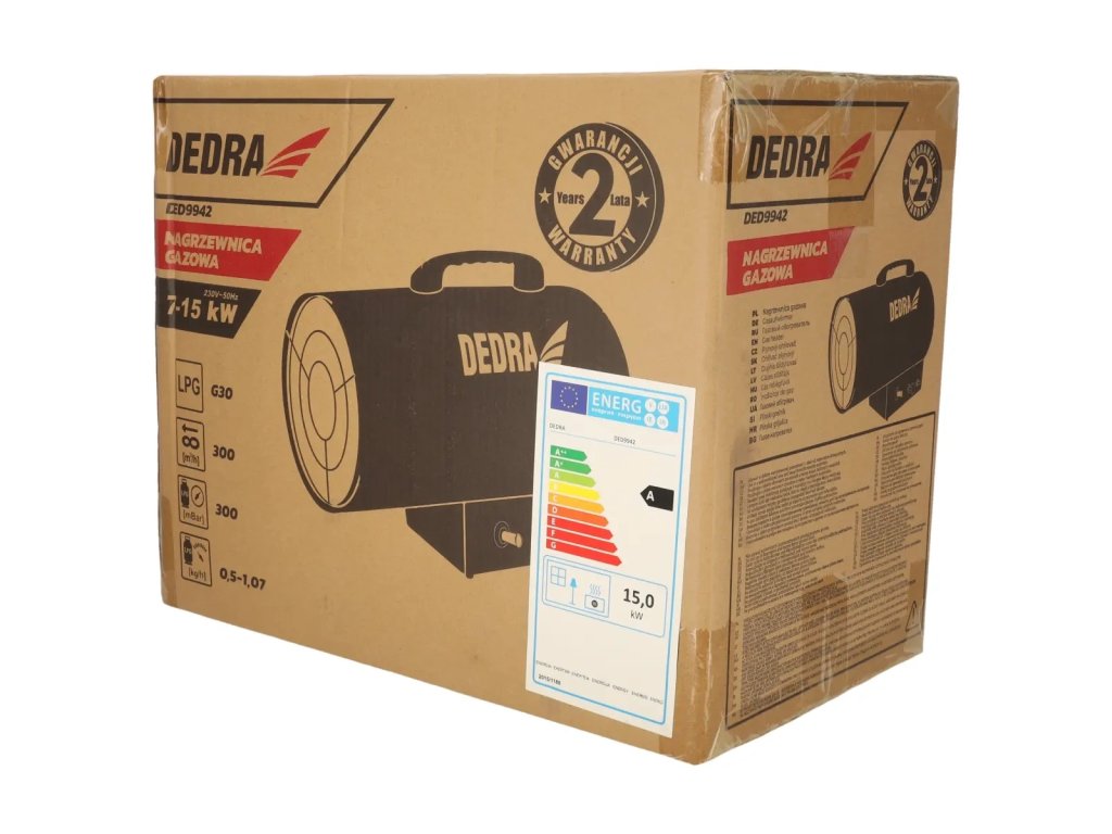 Plinsko grijaće tijelo DED9942 namijenjeno je za korištenje u zatvorenim prostorijama. Koristi se za grijanje negrijanih prostora, kao što su radionice, skladišta, proizvodne hale, staklenici ili pri građevinskim radovima. Grijač je pokretan propan-butanom (G30). Uređaj se smije koristiti samo u dobro prozračenim prostorima. Metalni omotač ne zagrijava se čak ni tijekom dugotrajnog rada. Metalno kućište ne zagrijava se čak ni tijekom dugog vremena. Set uključuje poseban regulator i cijev. Solna ručka olakšava nošenje i transport.Ovaj proizvod ne može se koristiti kao primarni izvor grijanja.