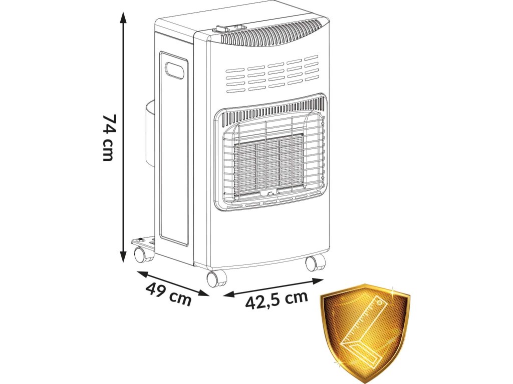 Zahvaljujući čvrstoj konstrukciji plinski štednjak tijekom zagrijavanja se ne ruši i kotači omogućuju brzo i jednostavno pomicanje grijalice.