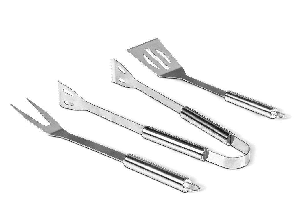 Osigurajte si udobnost i kupite pribor za roštiljanje od nehrđajućeg čelika. Set uključuje lopaticu, klješta i vilicu - osnovni pribor koji će olakšati okretanje ili vađenje pripremljenih poslastica s roštilja.