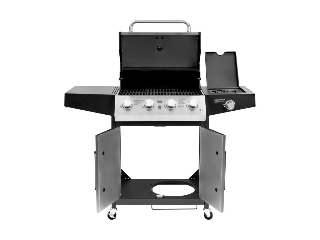 Roštilj Teesa BBQ 5007 MASTER ima prostran ormar koji vam omogućuje sigurno pohranjivanje plinske boce kapaciteta do 11 kg. Time plin ostaje skriven, što poboljšava estetiku i sigurnost korištenja. Čvrsta vrata od nehrđajućeg čelika olakšavaju pristup, a stabilna konstrukcija s kotačićima omogućava praktično premještanje roštilja.