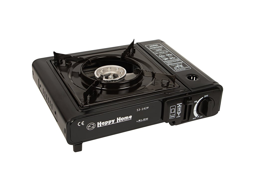 Plinski štednjak s snagom od 2200W. Pogonjen standardnim plinskim kartušama kao što su TS-700, ALPEN CAMPING 227G ili plinskom bocom (adapter je uključen). Kartušu možete lako spojiti i nakon potrošnje je zamijeniti novom. Štednjak ima ugrađeni automatski piezoelektrični upaljač, ne trebate šibice ili upaljač za paljenje. Osim toga, ima gumb za podešavanje plamena i klizač za podešavanje protoka plina.