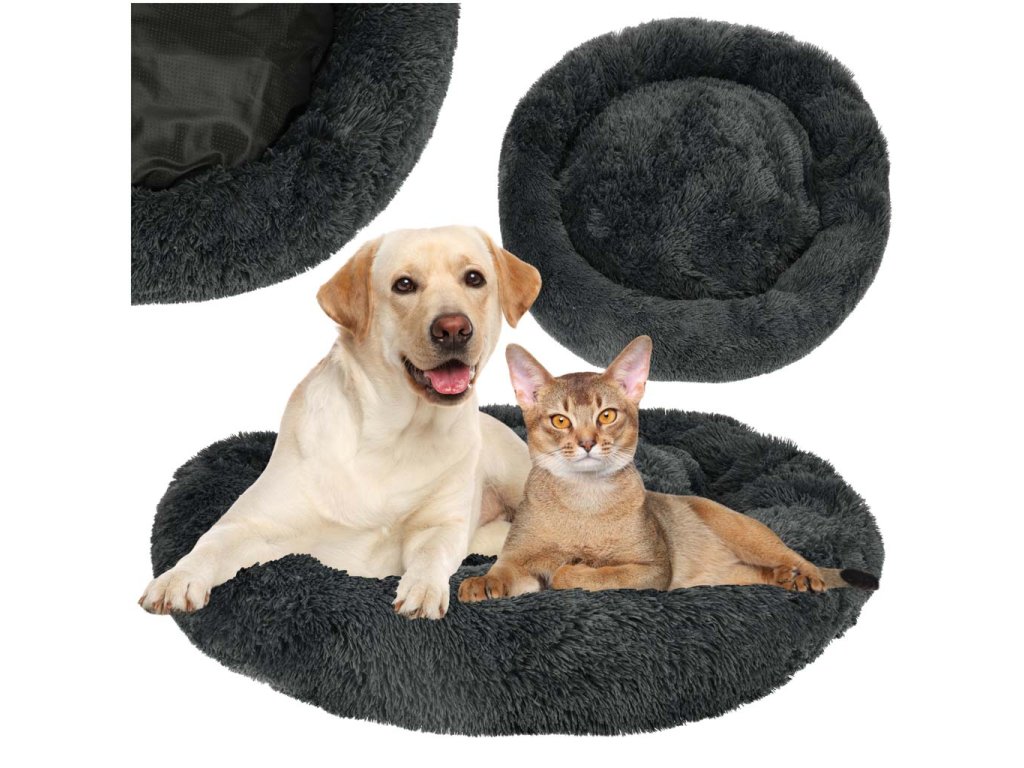 Plišani ležaj za vašeg psa ili mačku. Pruža udoban odmor - uzdignuti rubovi podupiru glavu i vrat vašeg kućnog ljubimca. Izrađen od mekog i na dodir ugodnog materijala u tamnosivoj boji. Ima protukliznu podlogu koja sprječava pomicanje ležaja.