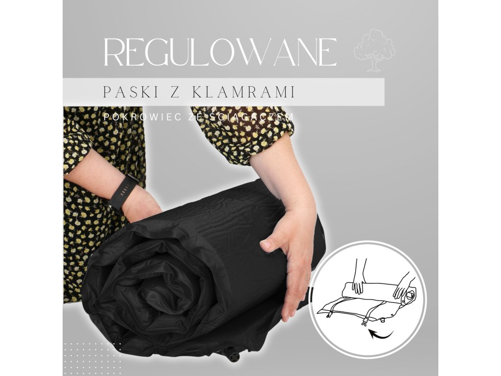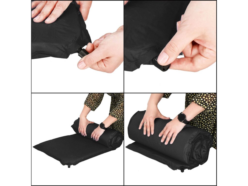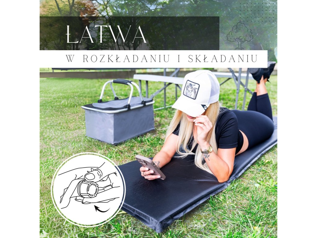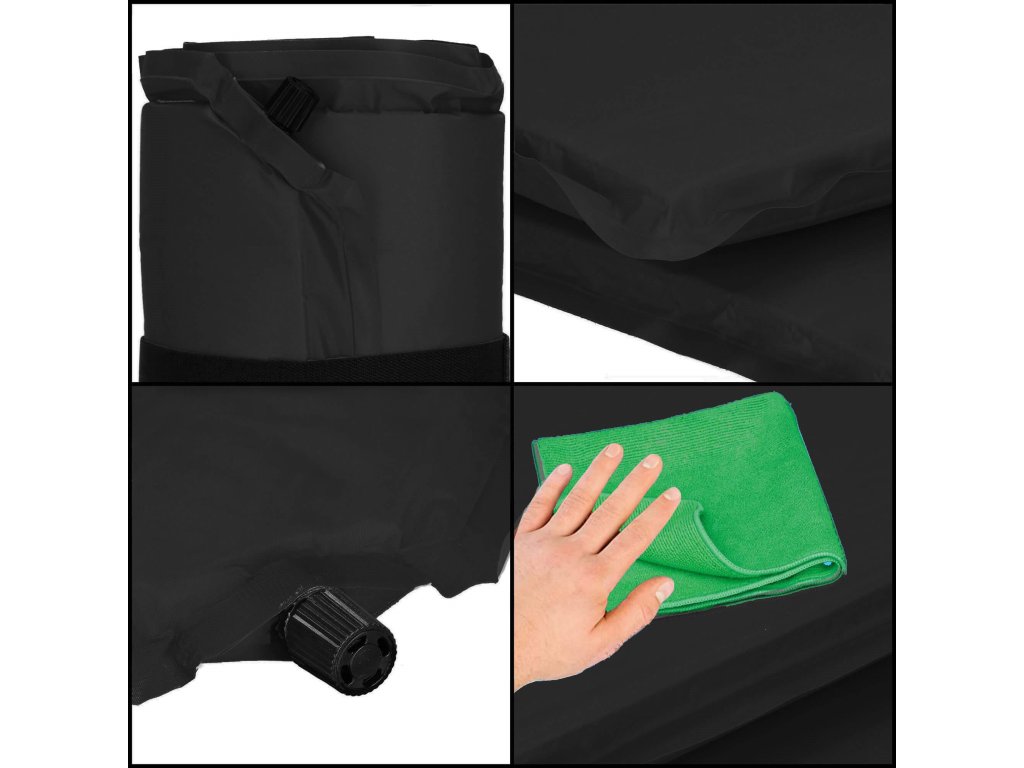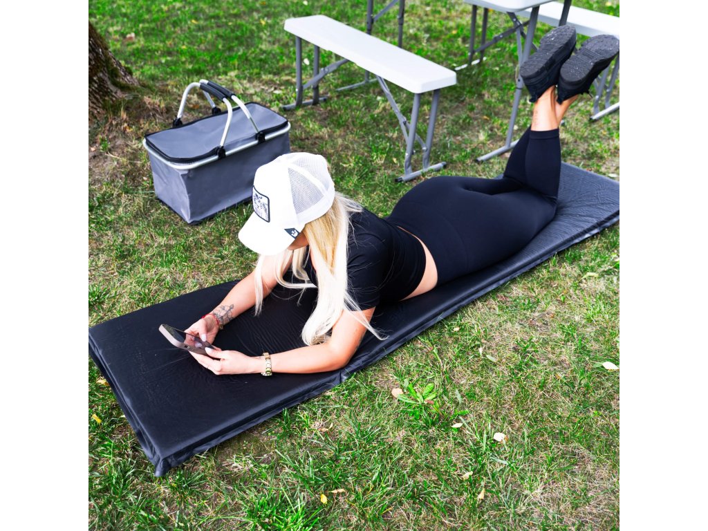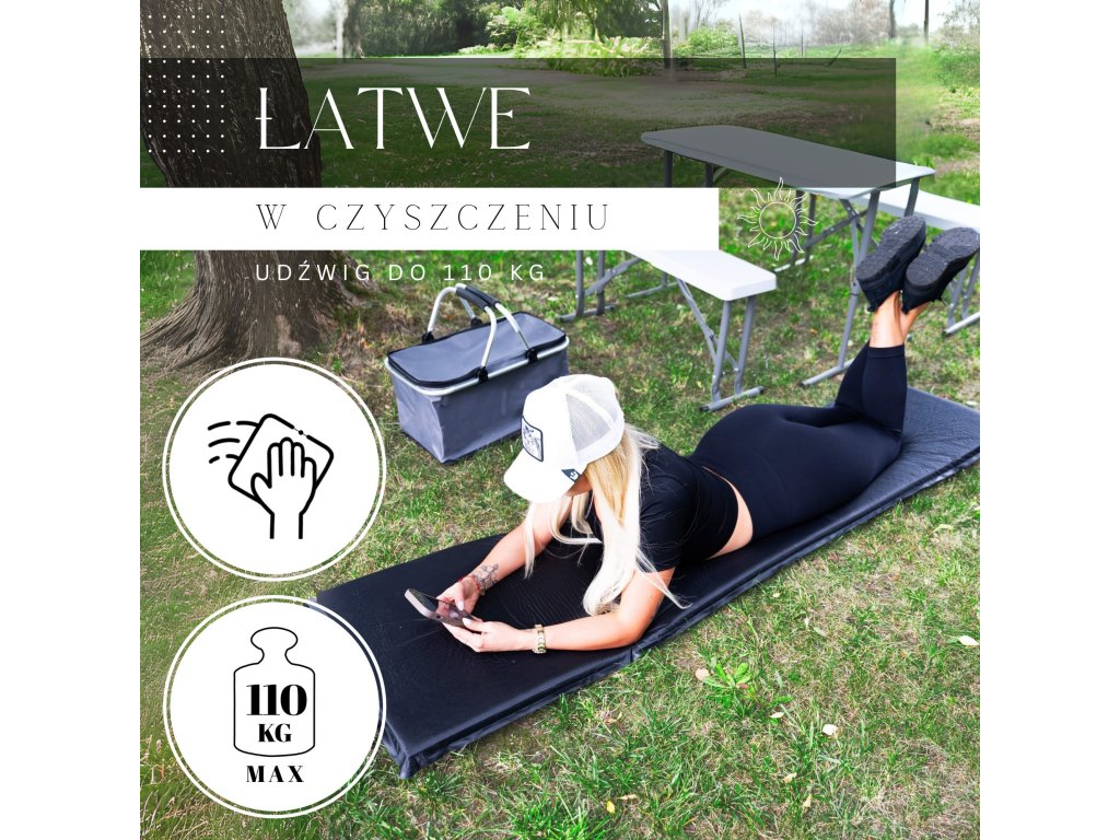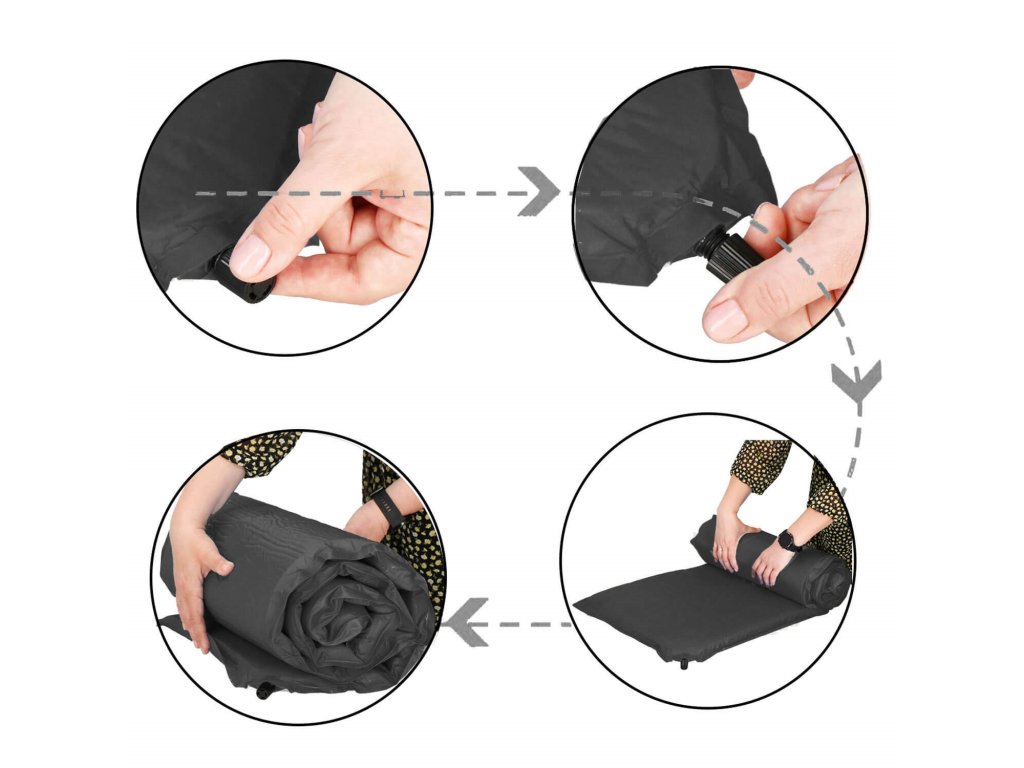 2 crne gumice - održavaju prostirku na jednom mjestu kada je složenaLako rasklapanje i sklapanje: Rasklopite je u 4 jednostavna koraka, a sklopite u 3.