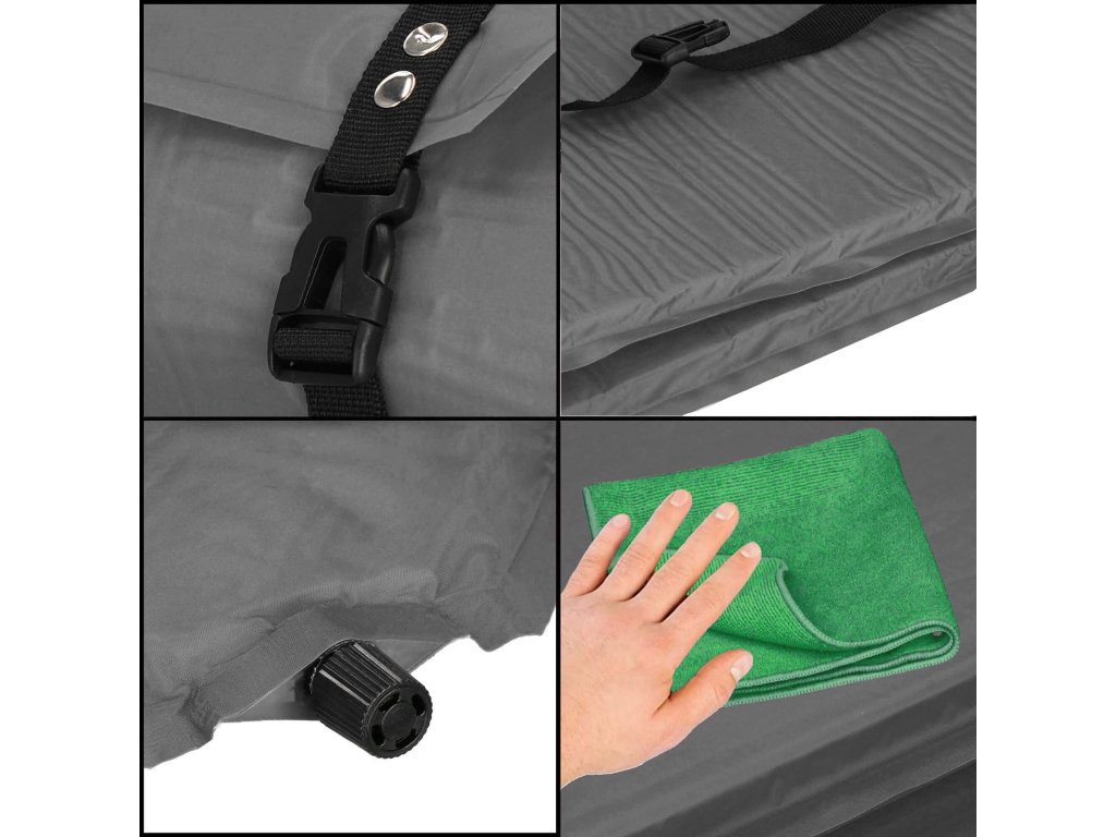 Jastuk zbog svoje veličine zahtijeva zasebno, ručno napuhavanje. Ventil je opremljen čepom, zahvaljujući kojem lako napuhujete i ispuštate zrak