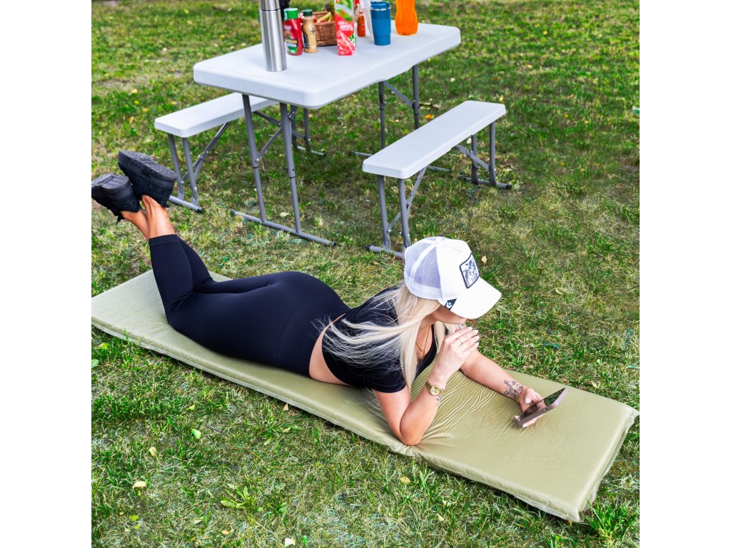 - Za dodatnu udobnost napumpaj prostirku ustima na otvoreni ventil.