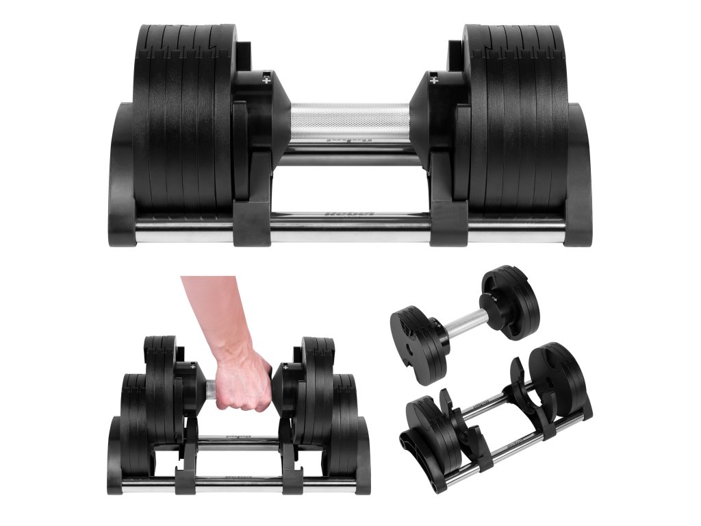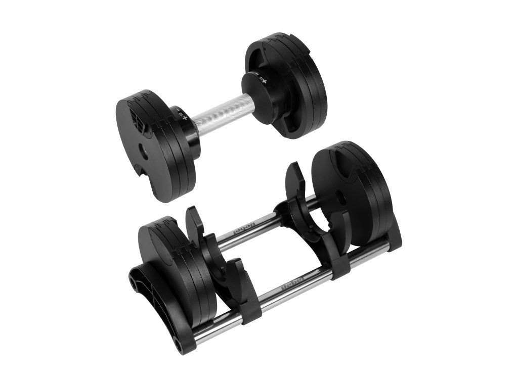 Podesivi uteg 24 kg Rebel Active moderna je rješenja za ljude koji žele trenirati učinkovito bez zauzimanja puno prostora. Zamjenjuje set klasičnih utega, pružajući uštedu prostora i brz pristup različitim razinama opterećenja. Idealan za kućnu teretanu, omogućava sveobuhvatan trening cijelog tijela – od bicepsa, preko tricepsa, do ramena i leđa.