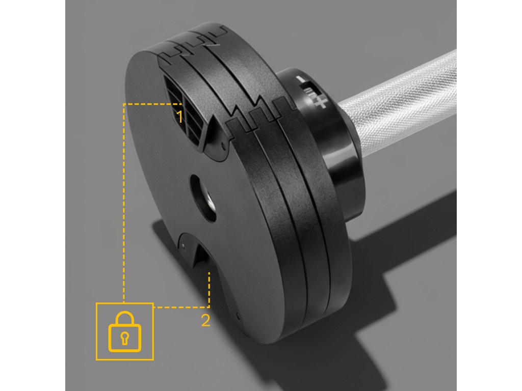 Uteg Rebel Active opremljen je dvostrukim mehanizmom za zaključavanje koji sigurno zaključava ploče nakon podešavanja odabranog opterećenja. Zaštita štiti korisnika od slučajnog iskliznuća opterećenja, što značajno povećava razinu sigurnosti. Ovo je pouzdan sustav koji se dokazuje tijekom dinamičnih složenih treninga i funkcionalnih vježbi.