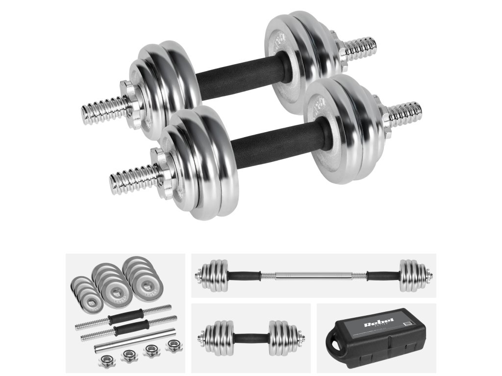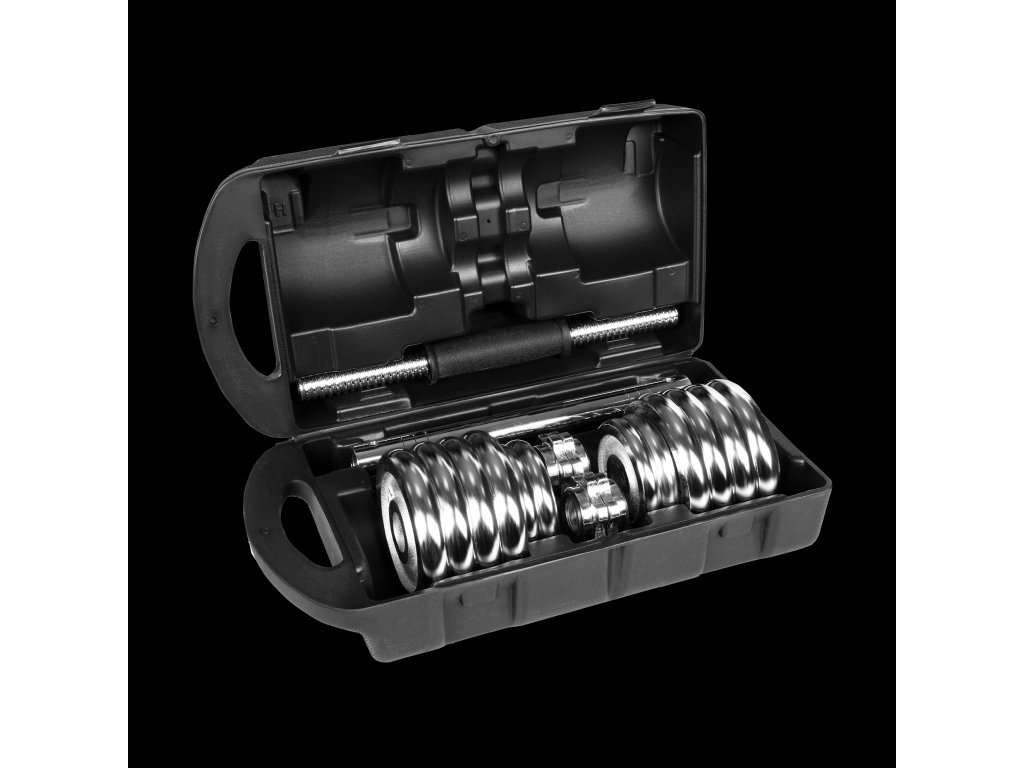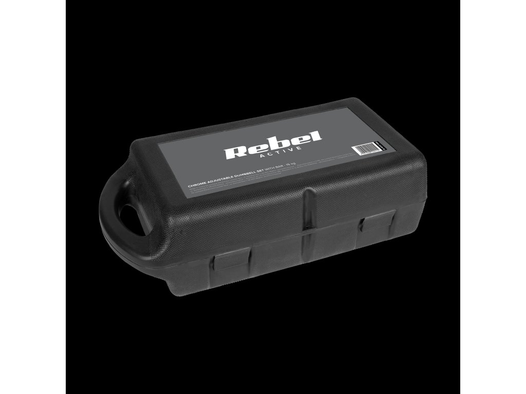 Podesivi kromirani lijevani utezi u kovčegu s osovinom, set 15 kg REBEL ACTIVE