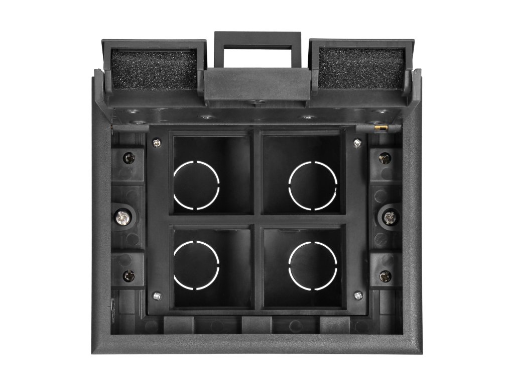 - Kapacitet: Dizajnirana za 4 modula dimenzija 45mm, čime pruža dovoljno prostora za razne tipove električnih, podatkovnih ili multimedijalnih priključaka.