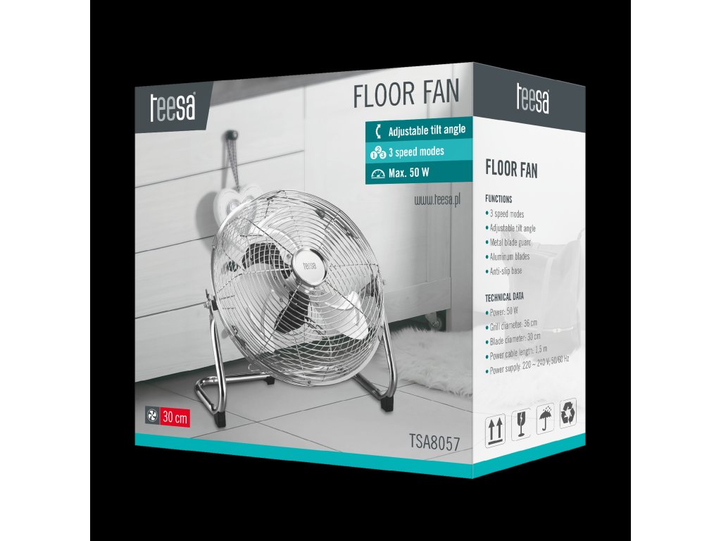 Podni ventilator Teesa je kombinacija modernog dizajna, učinkovitosti i sigurnosti. Zahvaljujući svojoj funkcionalnosti, bit će neophodan element opreme vašeg doma ili tvrtke, koji će vam osigurati ugodne i udobne trenutke u najtoplijim danima.