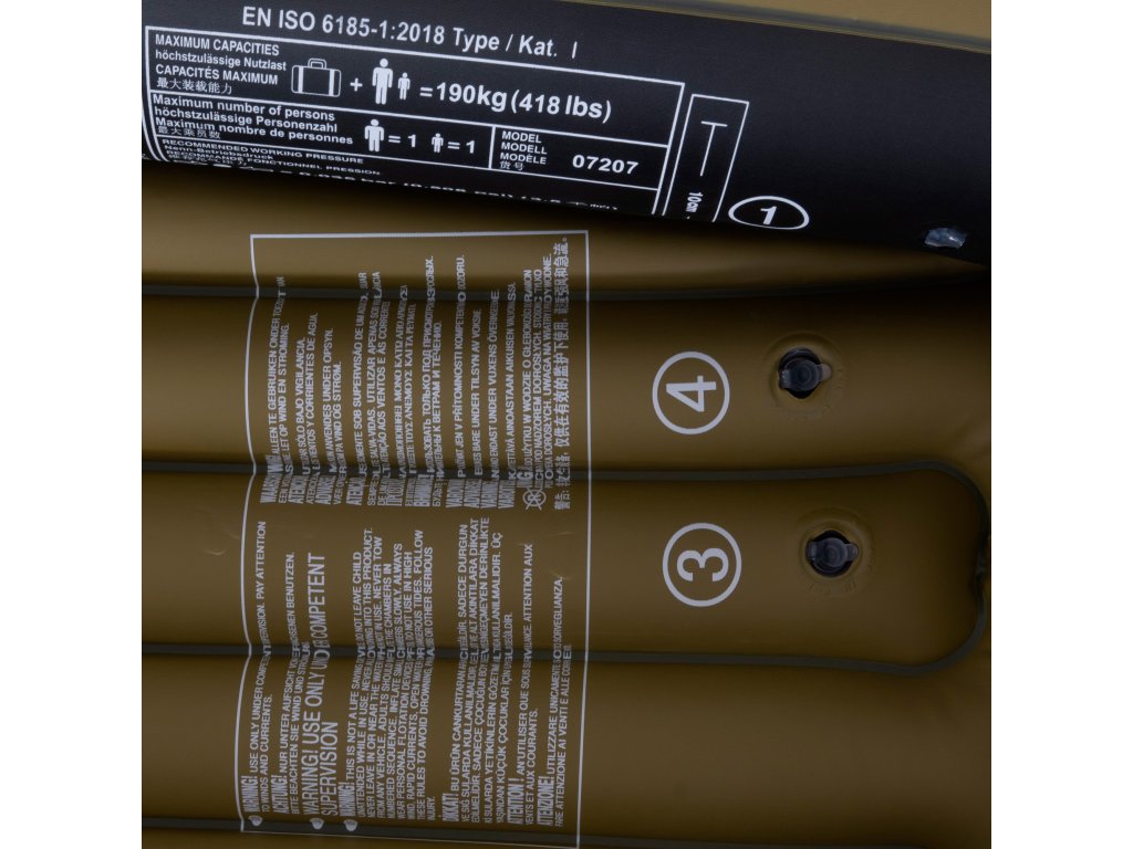 Izrađena od čvrstog PVC-a, čamac nudi otpornost na abraziju i mehanička oštećenja. Četiri neovisne zračne komore i sigurnosni ventili povećavaju stabilnost i minimiziraju rizik od gubitka zraka. To osigurava mir i tijekom intenzivne uporabe.