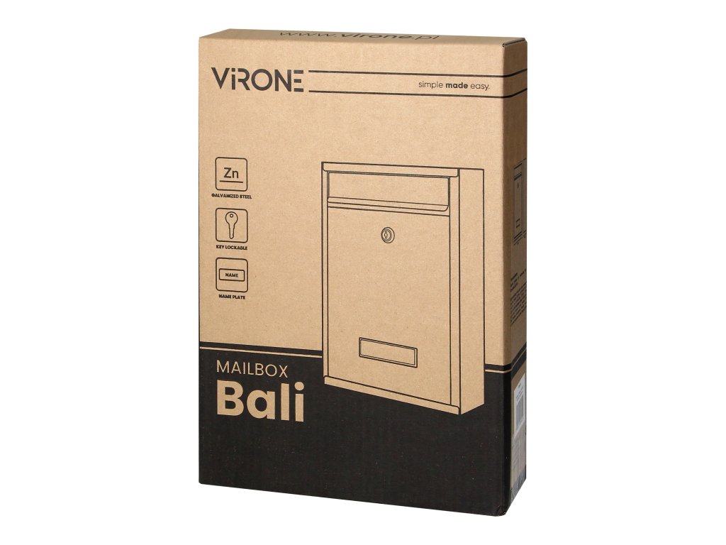 Klasični i dimenzionalno mali poštanski sandučić, koji je idealan za ugradnju svugdje gdje imamo ograničen prostor. Prikladan je za instalaciju i u unutarnjim i vanjskim prostorima. Bez problema u njega stanu pisma formata A5. Kućište je izrađeno od pocinčanog, praškasto lakiranog čelika, što jamči otpornost na nepovoljne vremenske uvjete. Sandučić ima praktično otvaranje s ključem (2 komada u setu) i mjesto za ime.Tehnička specifikacija