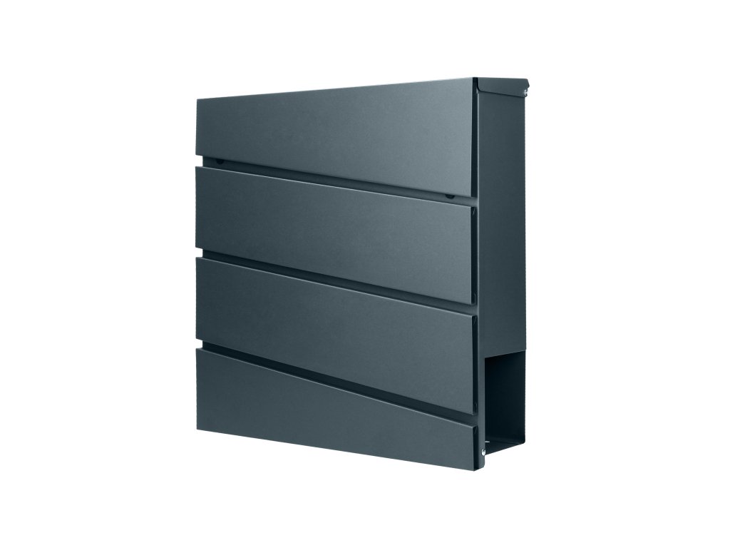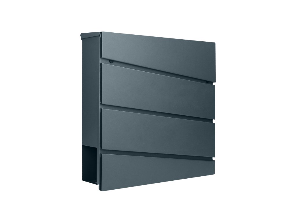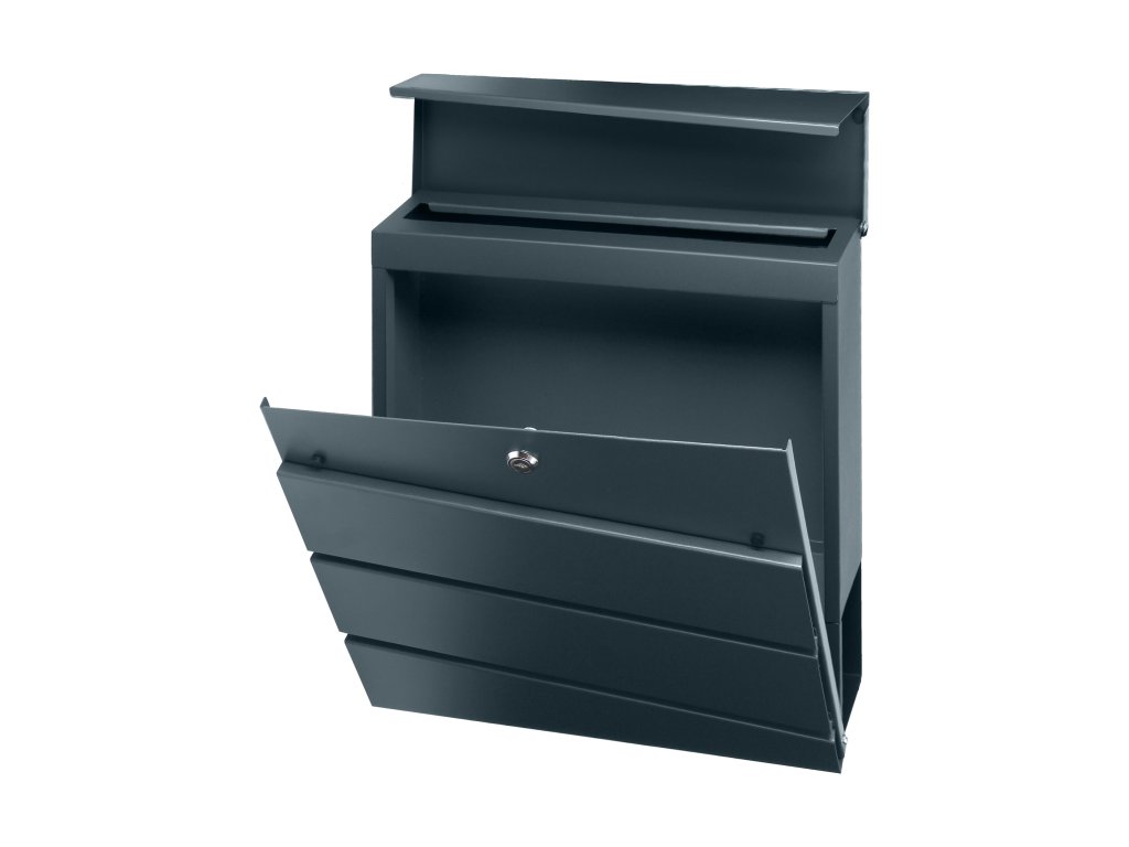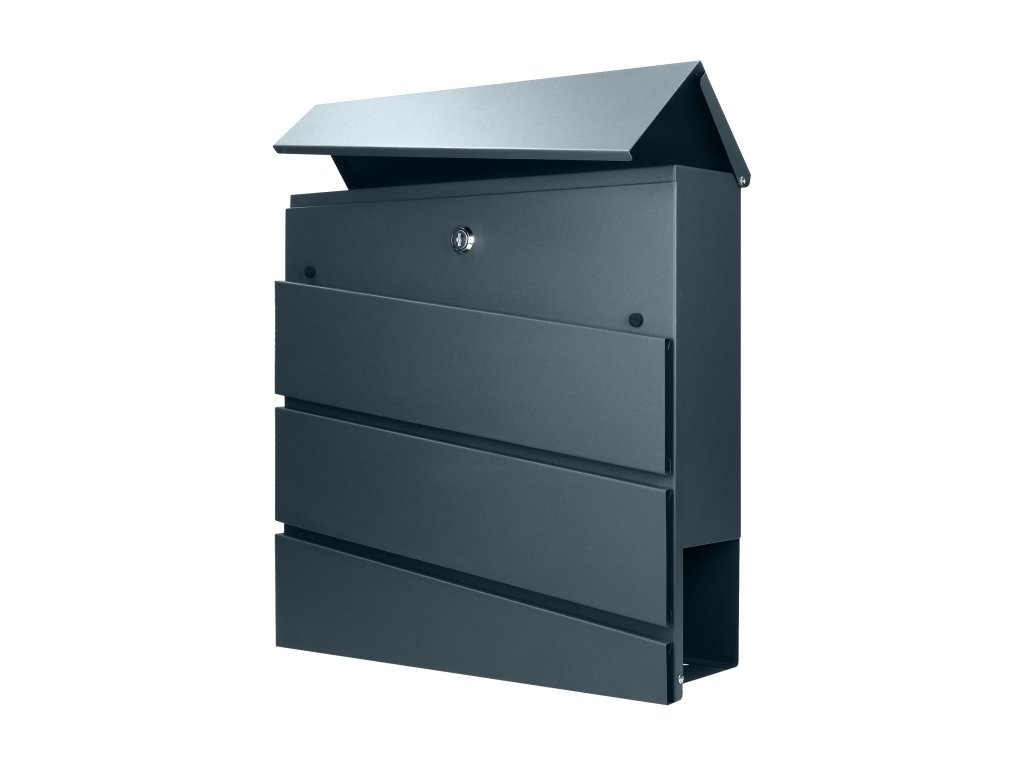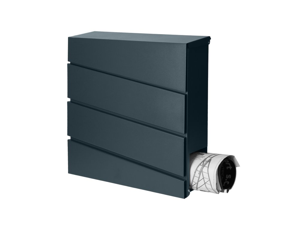 Ovo moderno poštansko sanduče privlači pažnju svojim oblikom. Pogodno je za instalaciju u interijerima, kao i na vanjskim fasadama ili ogradama. Zbog svojih velikih dimenzija, sanduče je vrlo prostrano i bez problema prima pisma formata A4. Na donjem dijelu sandučića nalaze se otvori koji odvode vlagu i štite poštu od vlaženja. Ormar je izrađen od pocinčanog, praškasto lakiranog čelika, što osigurava otpornost na nepovoljne vremenske uvjete. Sanduče ima udobno otvaranje pomoću ključa (2 komada u kompletu) i držač za novine.Tehnička specifikacija