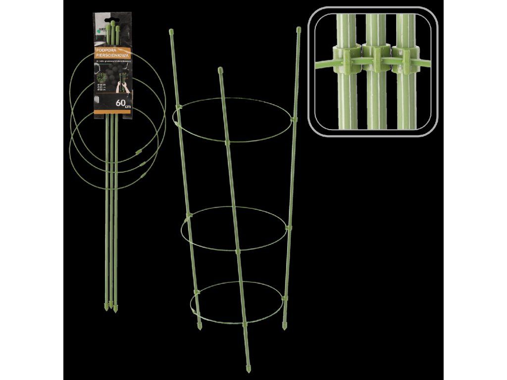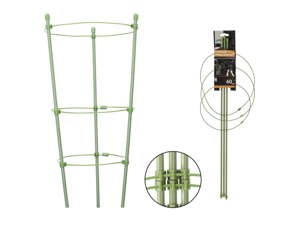 Kružna podrška s stupovima je odličan izbor za sobne biljke i cvjetne gredice. Zbog čvrste izrade od metala i plastificiranja, izuzetno je otporna na oštećenja i nepovoljne vremenske uvjete, a zahvaljujući zelena boji postaje gotovo nevidljiva na pozadini biljke. Korisna npr. pri uzgoju: američkih borovnica, hortenzija. Sprječava "položavanje" biljaka i omogućuje im skladan rast. Kružna podrška može biti zanimljiva alternativa različitim vrstama pojedinačnih štapova. Zelena boja proizvoda idealno se slaže s biljkama, kao i dekoracija vrtova. Podršku je potrebno postaviti u zemlju pored biljke i pričvrstiti je za stabljiku, čime osiguravamo odličnu stabilizaciju i zaštitu od lomljenja čak i tijekom vjetrovitog vremena.
