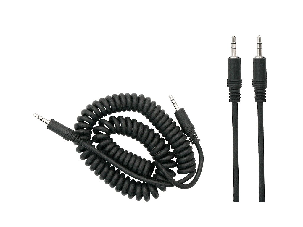 Konektor s 2 3,5 mm stereo minijack konektorima s spiralnim kabelom. Konektori jack koriste se za prijenos analognih signala, posebno za audio veze.