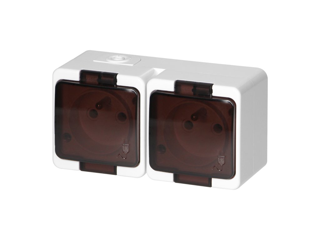 Površinska dvostruka utičnica 2x2P+E, prskajuća s poklopcem, IP44, SMART, bijela