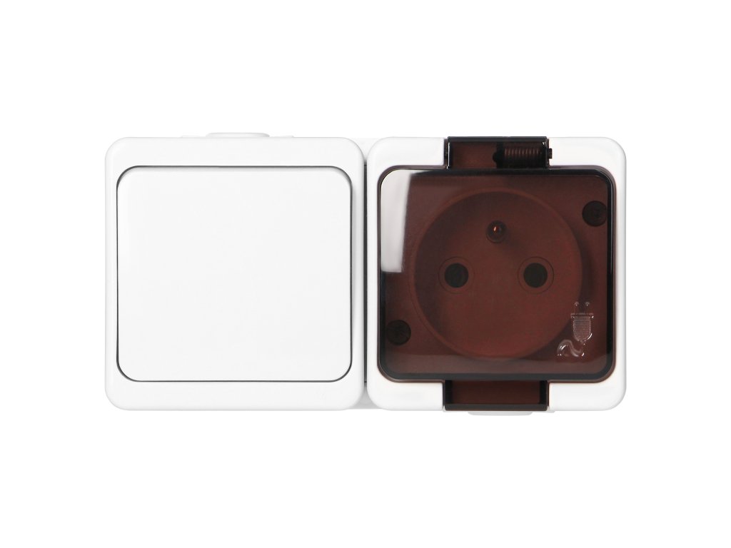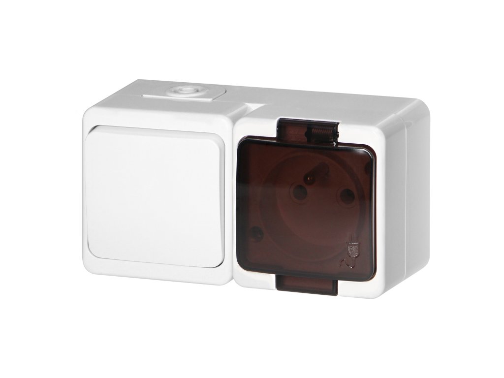 Površinska jednostruka utičnica 2P+E s dimnim poklopcem + jednopolni sklopka, IP44, PAMETNA, bijela