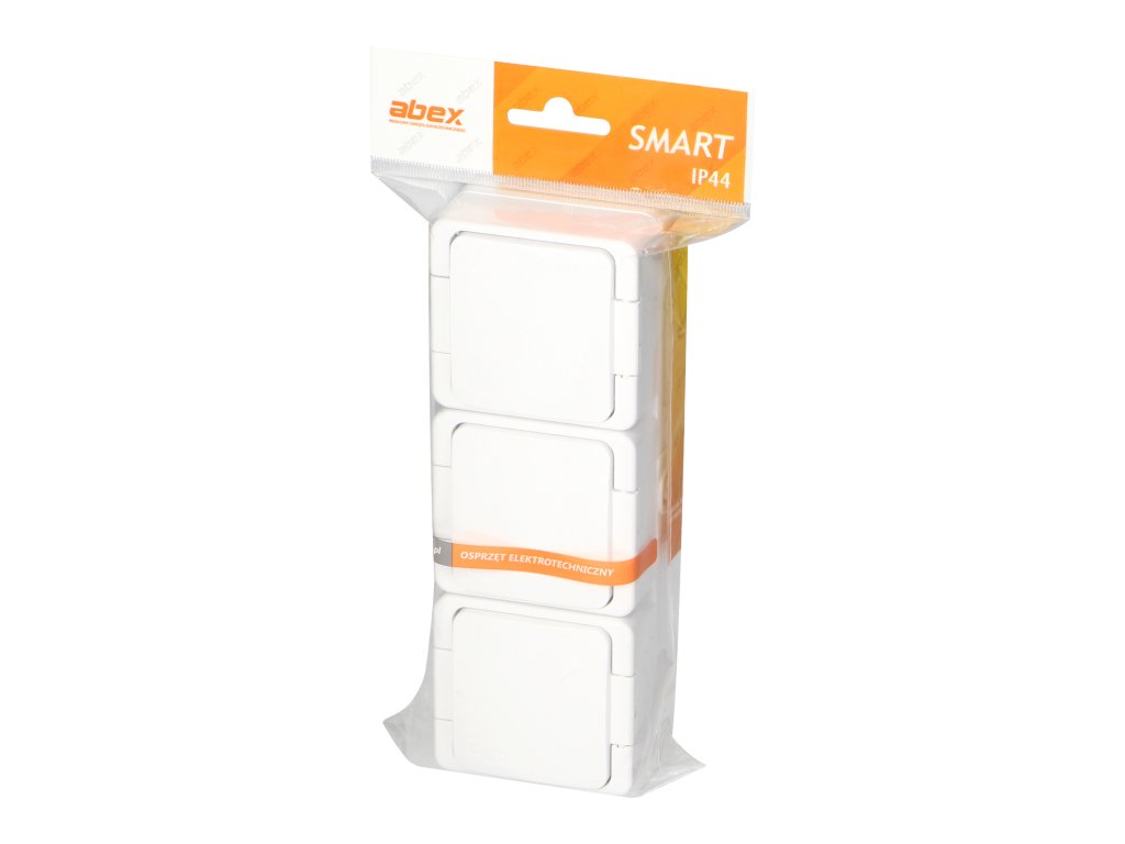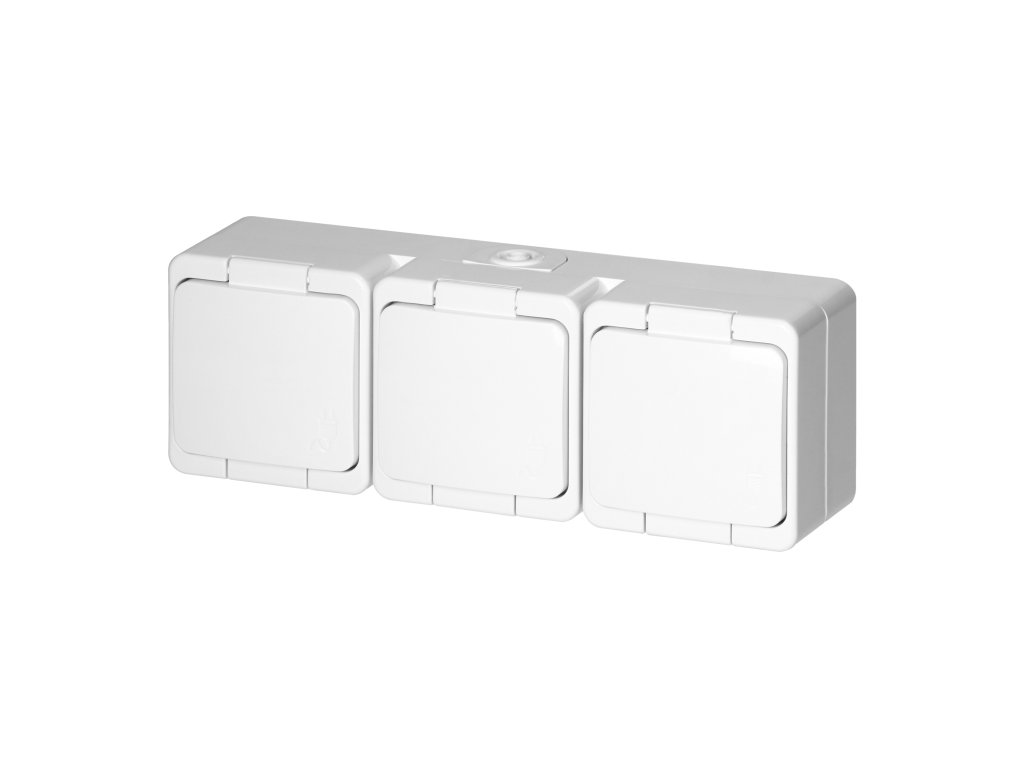 Površinska trostruka utičnica 3x2P+E, prskajuće-čvrsta s poklopcem, IP44, SMART, bijela