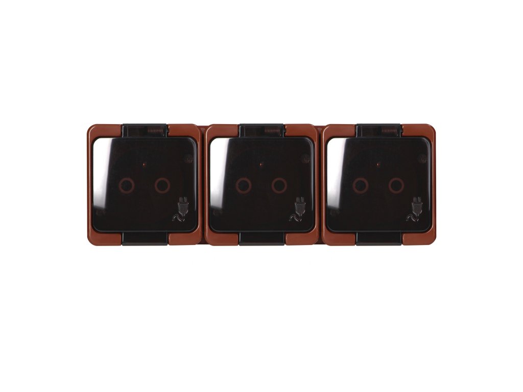 Površinska trostruka utičnica 3x2P+E, vodootporna s dimnim poklopcem, IP44, SMART, smeđa
