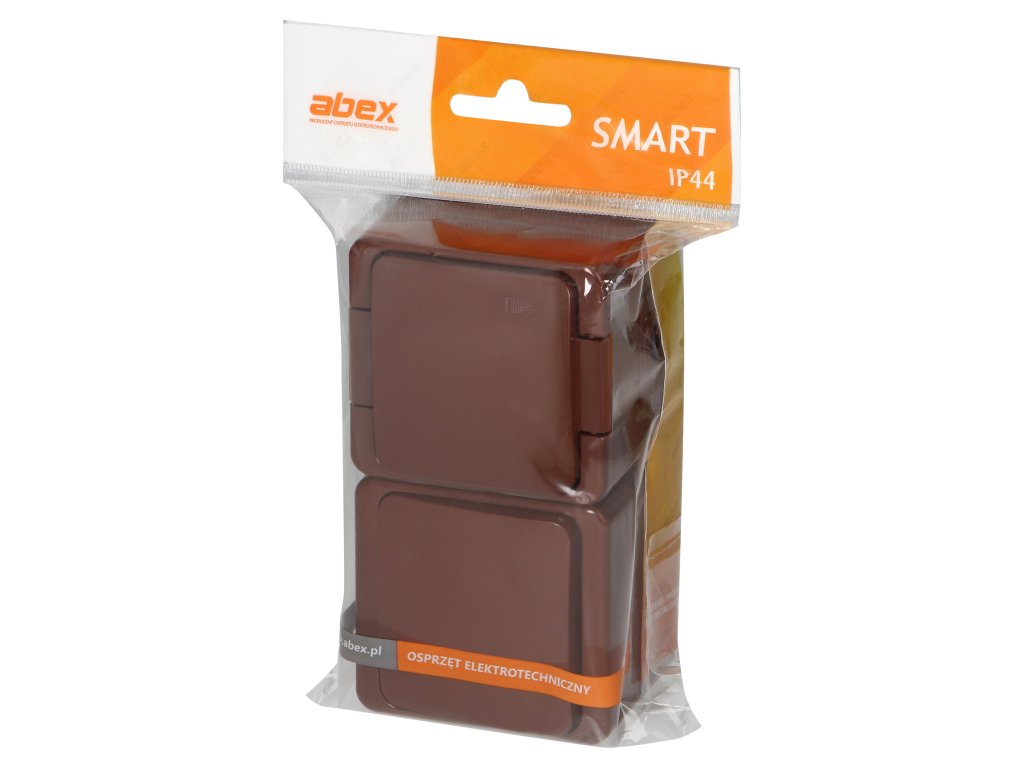 Površinska utičnica 2P+E s poklopcem + jednopolni prekidač, IP44, SMART, smeđa