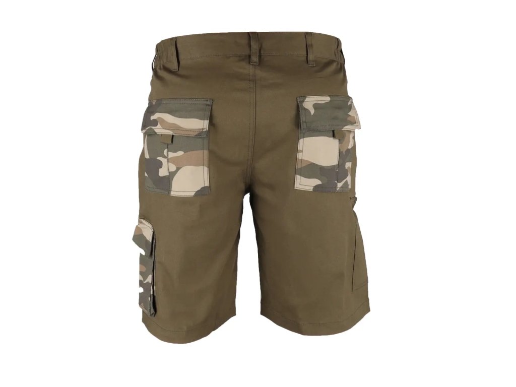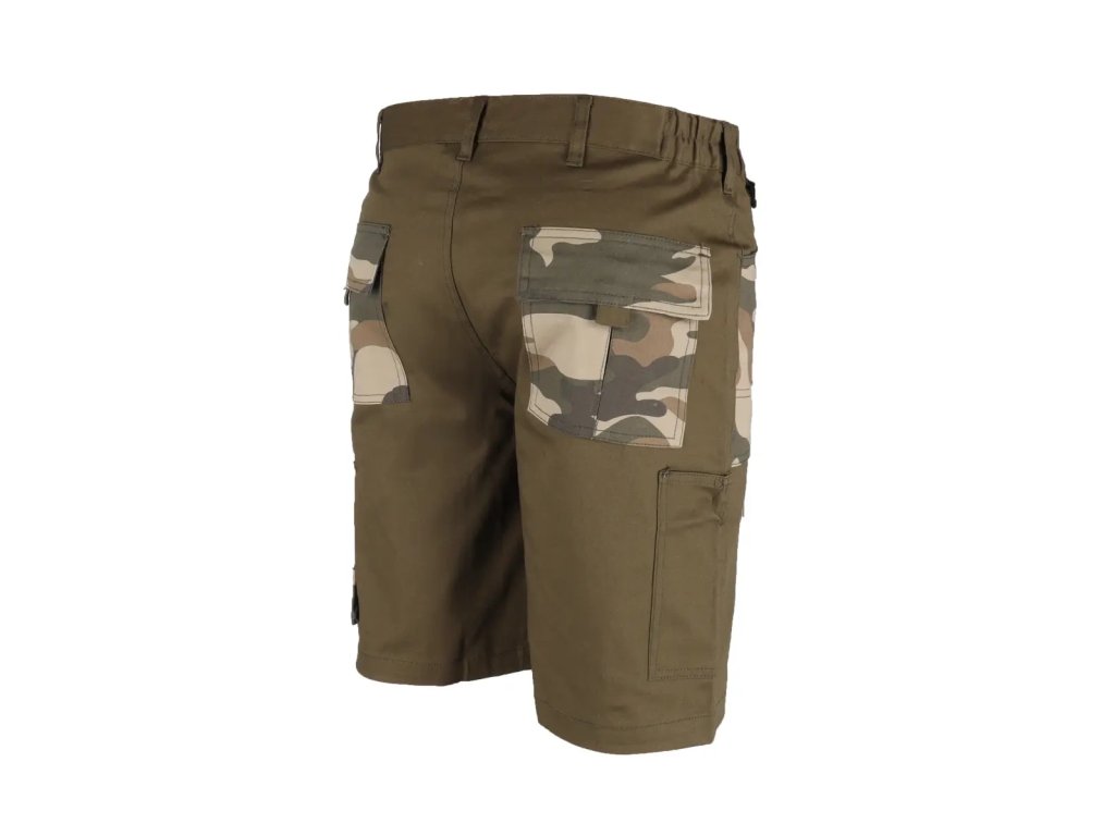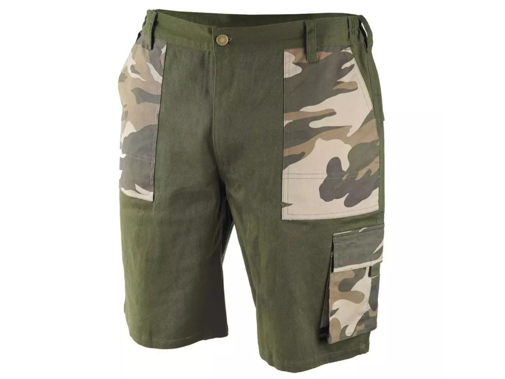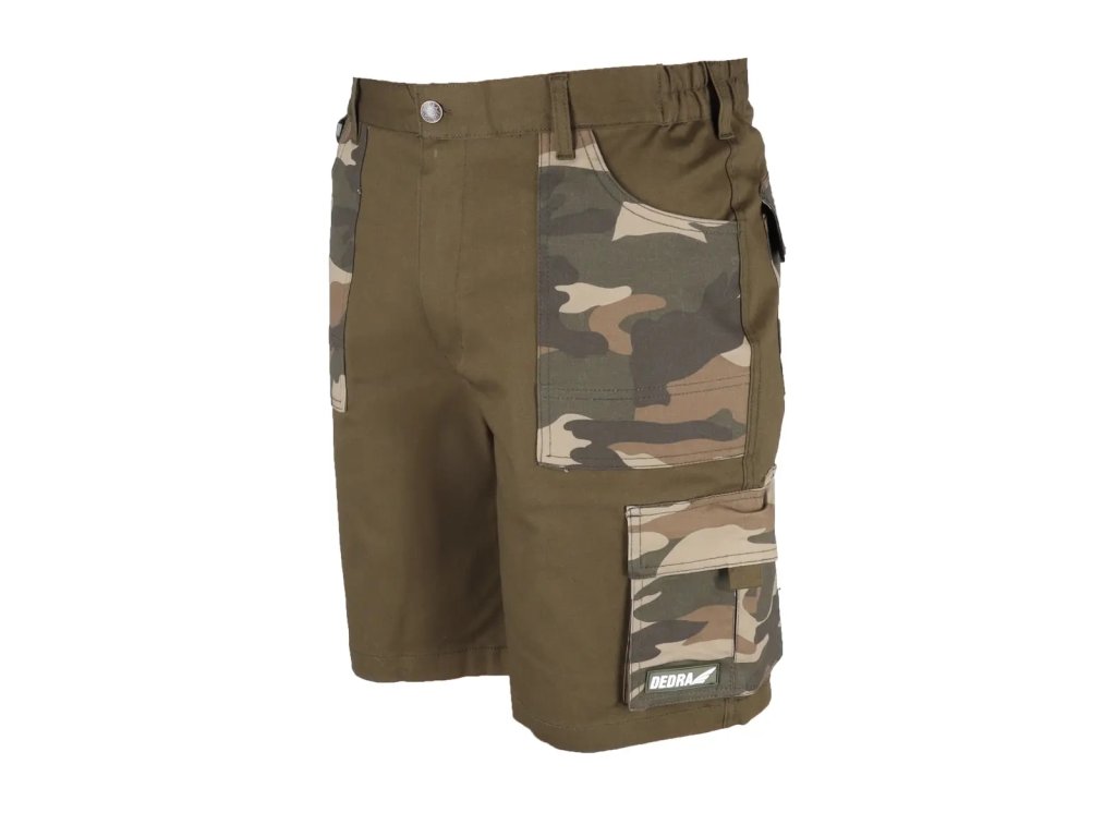 Bezpečnostné šortky M ORO LINE sú vyrobené zo zmesi bavlny a elastanu. Materiál s gramážou 200 g/m? zabezpečuje dobrú cirkuláciu vzduchu a voľnosť pohybu. Použitie e lastanu v tkanine prispieva k jej trvanlivosti a odolnosti proti roztrhnutiu. Má funkčné vrecká, z ktorých tri sa zapínajú na suchý zips. Vďaka elastickému pásu sa nohavice ľahko prispôsobia a pohodlne nosia. Vrecká vo farbe moro. Ideálne na použitie v záhrade, pri montáži alebo v dielni.