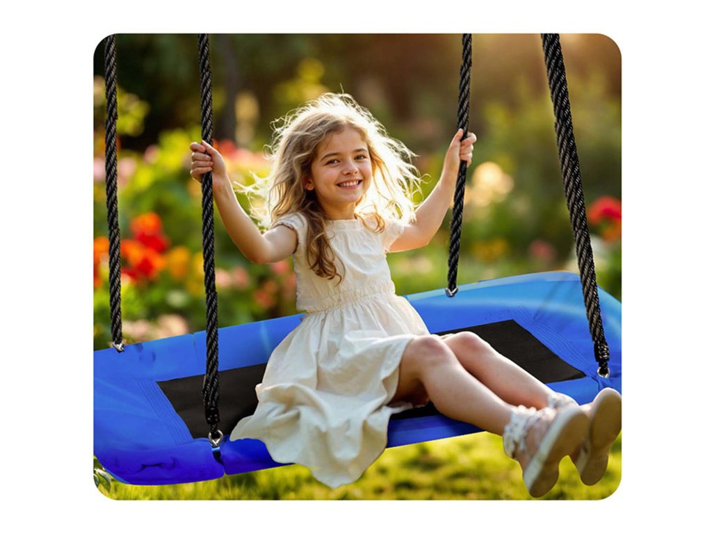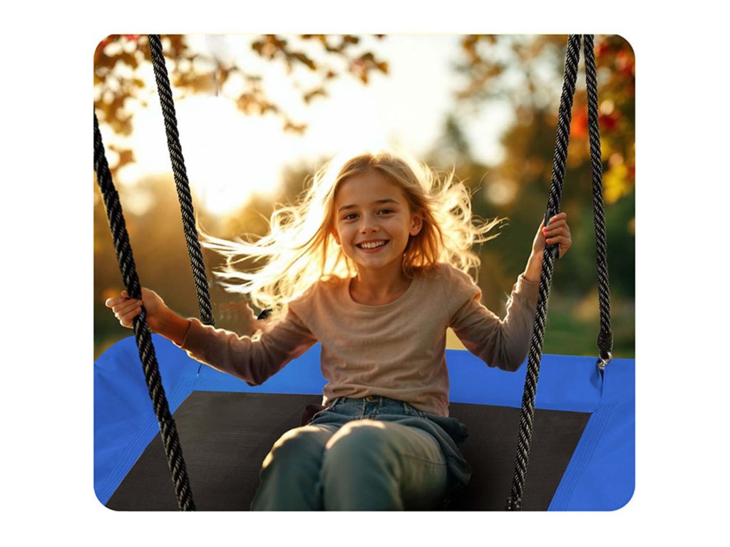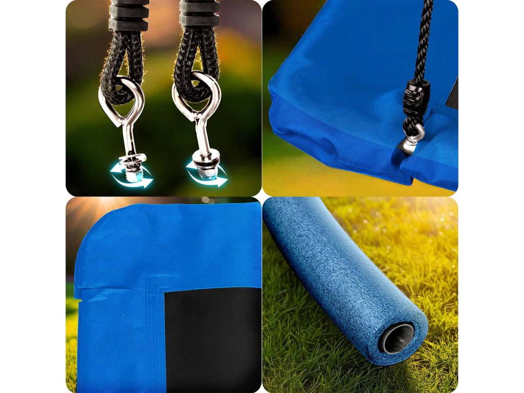 Ljuljačka na čeličnom okviru prekrivena mekom zaštitnom pjenom PE s višestrukim šavovima i debelim visećim užadima. Osigurava sigurnost, stabilnost i trajnost.