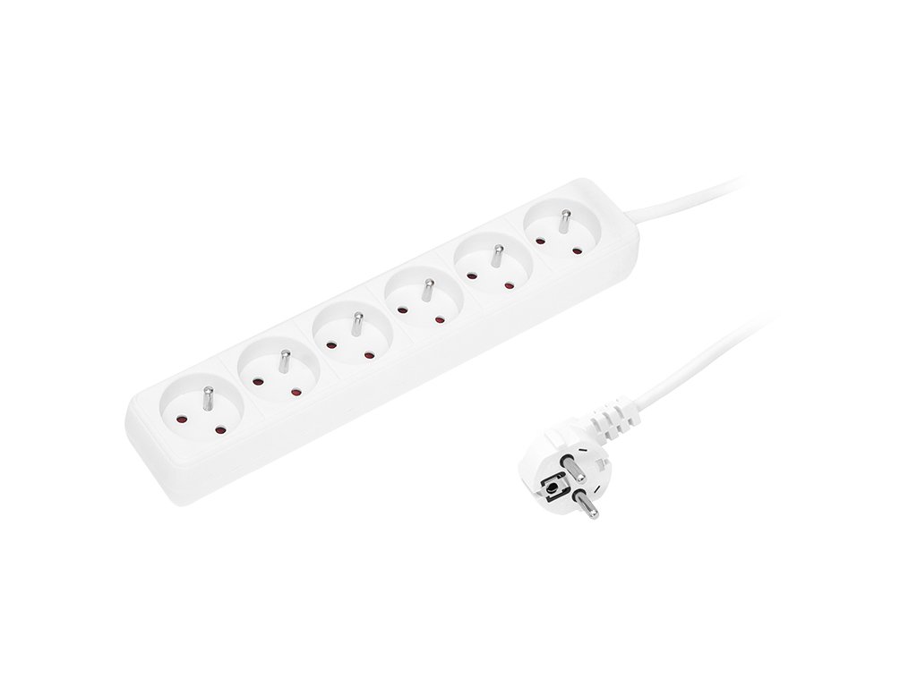 Przedłużacz sieciowy BLOW w kolorze biały z trzema gniazdami przeznaczony do użytku domowego. Przedłużacz pozwala podłączyć urządzenia, które są oddalone od gniazda elektrycznego. Produkt z jednej strony posiada 6 gniazd, które są obrócone pod kątem a z drugiej pojedynczy kątowy wtyk sieciowy.