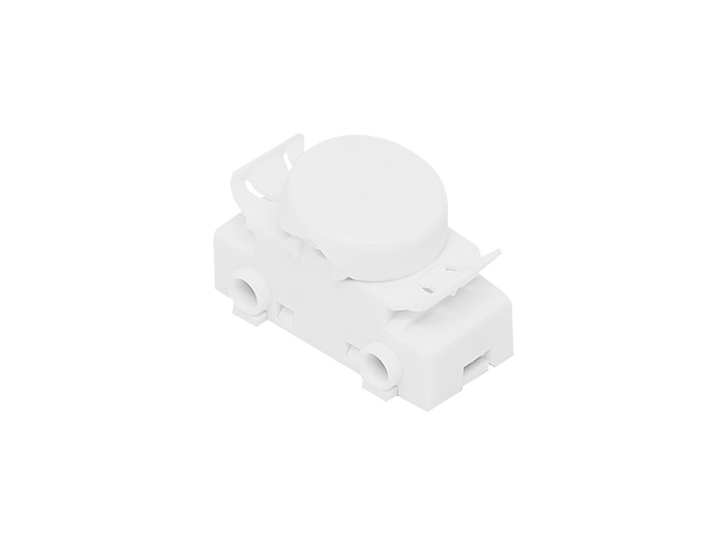 Prolazni prekidač PP10 u bijeloj boji namijenjen za ugradnju u 230V instalacije, kao što su noćne lampe i slično.
