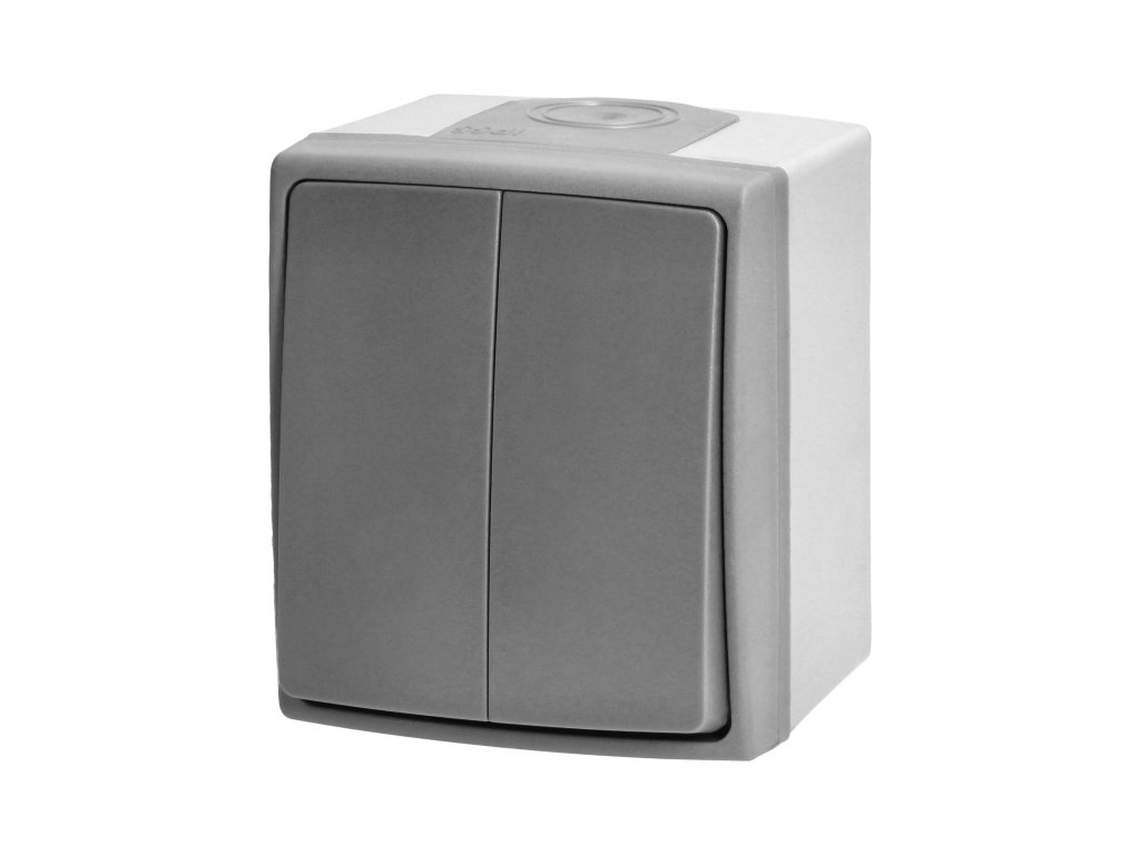 AQUATIC PRO IP55 Dvotipkalo, je površinski montirani prekidač s dvije tipke namijenjen upravljanju dvama (ili više) krugovima, koji služe, primjerice, za povezivanje lustera u elektroinstalaciji.