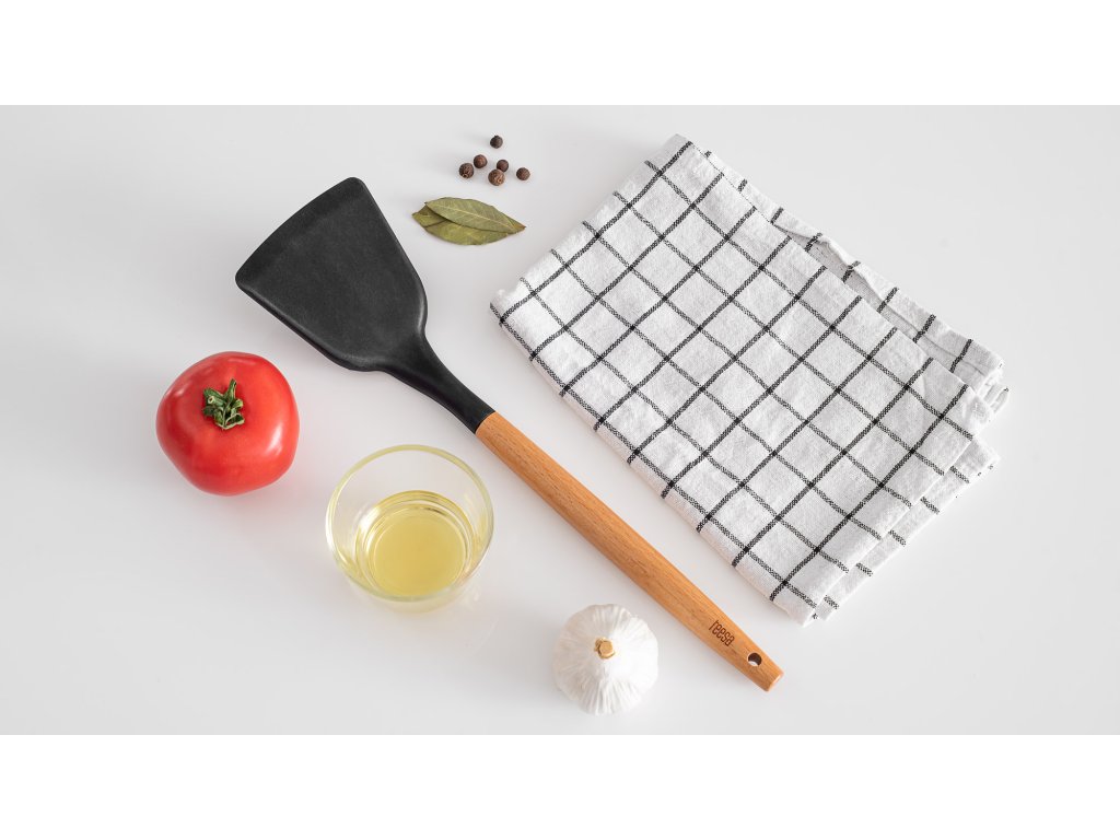 Svaka domaćica zna da je uvijek dobro imati pri ruci najvažnije kuhinjske dodatke koji nisu samo praktični, nego i lijepo dopunjuju kuhinju. Jedan od takvih kuhinjskih pomagala je silikonska lopatica idealna za prženje, miješanje i okretanje hrane. Profilirani, fleksibilni i blago zašiljeni dizajn lopatice u kombinaciji s udobnom drvenom ručkom olakšava podizanje prilijepljene hrane bez oštećenja površine tave.