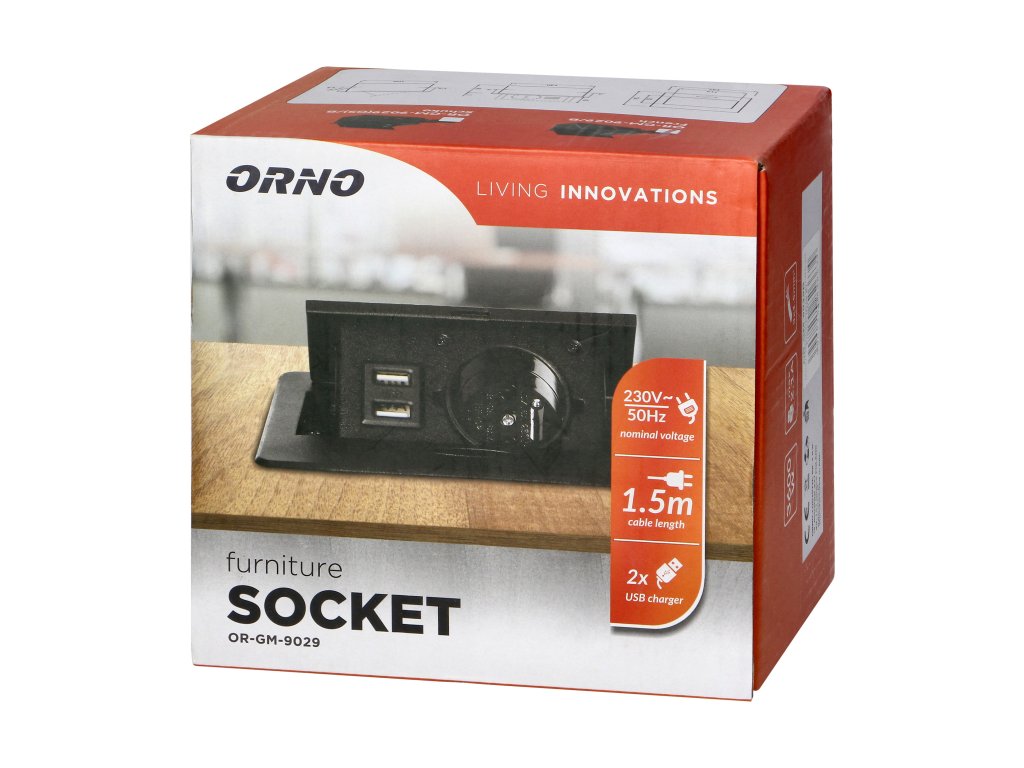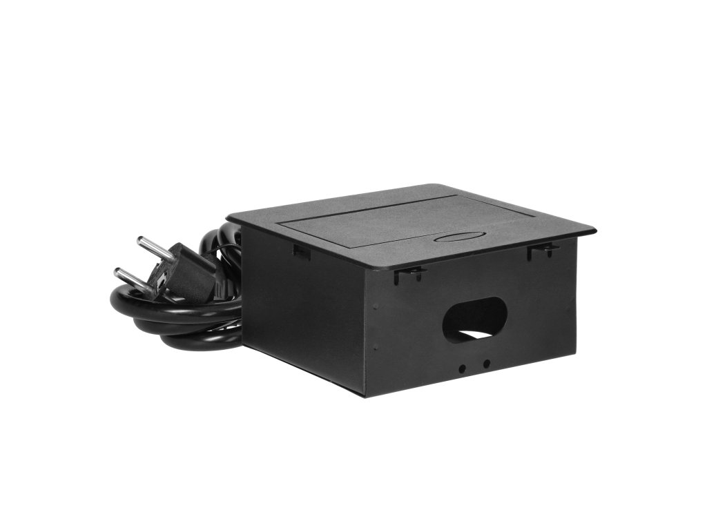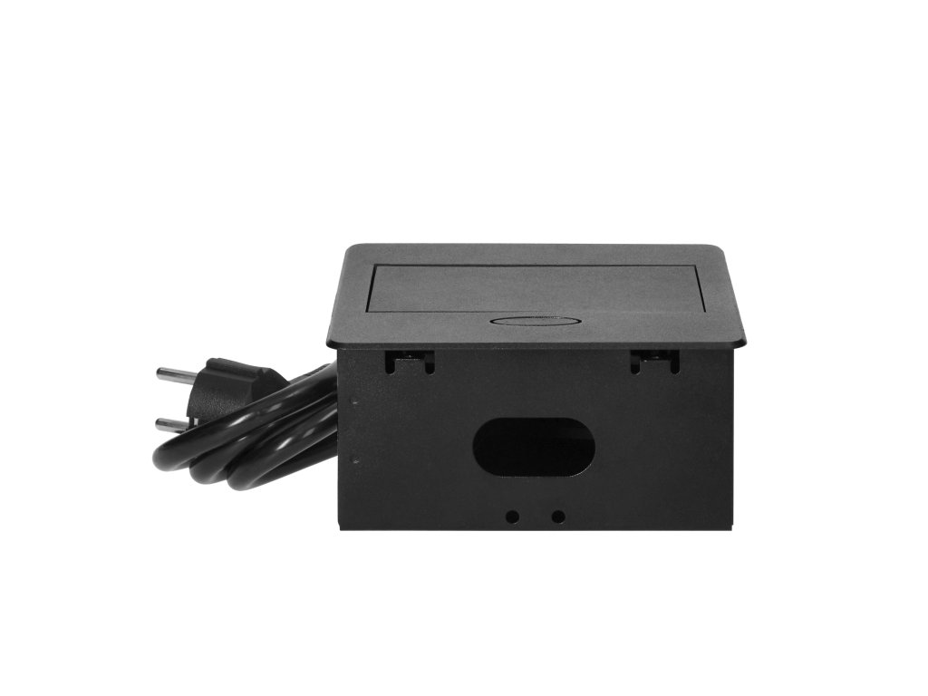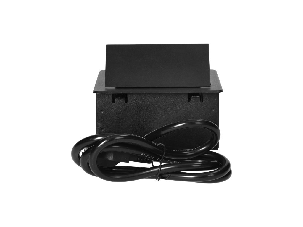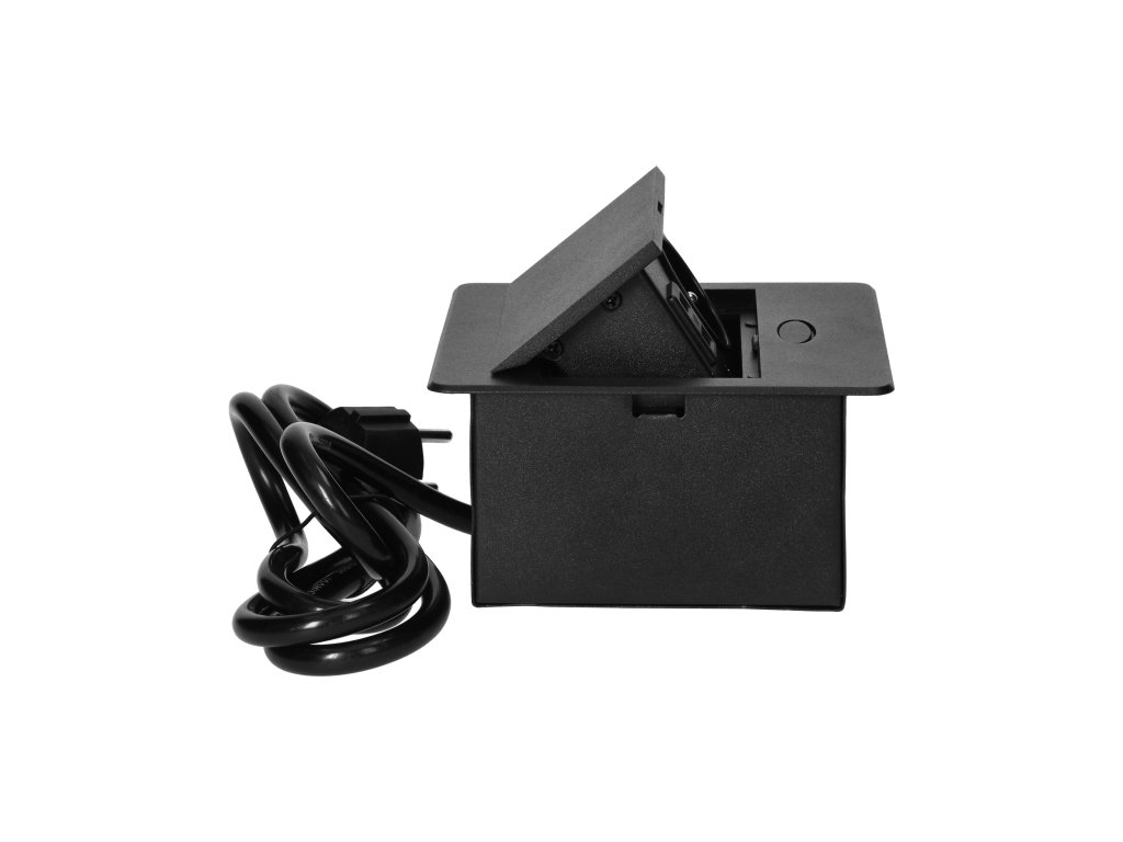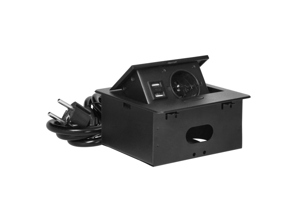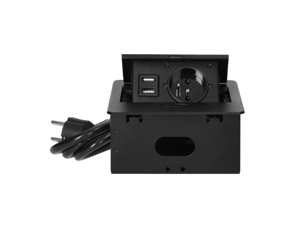 Uzidana mrežna utičnica s USB punjačem u kliznom gornjem poklopcu. Ovaj uređaj je namijenjen za ugradnju u stolove, ploče stolova i stolove i može se montirati vertikalno ili horizontalno, omogućujući pristup utičnicama. Može napajati jedan uređaj od 230V istodobno puneći 2 mobilna uređaja. Ima zatvoreni panel s mrežnom utičnicom, USB priključcima i kabelom duljine 1,5 m. Boja: crna.