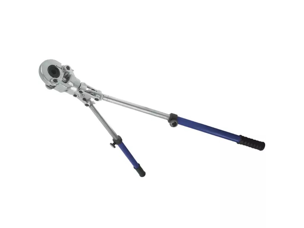 Alat je pogodan za prešanje PEX spojki promjera 16, 20, 25 i 32 mm, ima podesivu duljinu poluge i rotirajuću glavu, što olakšava rad u teško dostupnim područjima. Gumirane ručke povećavaju udobnost pri korištenju. Plastični kofer za jednostavan transport i skladištenje.