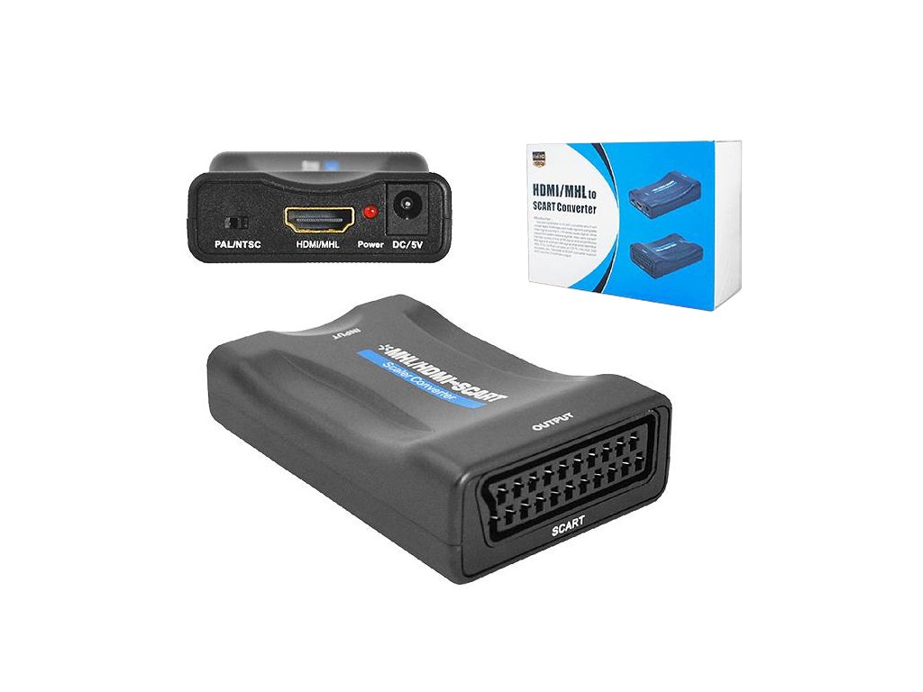 Konwerter HDMI na SCART to uniwersalny konwerter cyfrowego wejścia HDMI na analogowe wyjście SCART. Cechy: - Konwersja sygnału cyfrowego HDMI na analogowe wyjście SCART - Kompatybilny z wejściem HDMI1.3, wsparcie dla 720p / 1080p. - Zasilacz w zestawie - Plug and play, bez instalacji dodatkowych sterowników. - Mały i lekki, wygodny do przenoszenia i użycia.Konwerter HDMI na SCART to uniwersalny konwerter cyfrowego wejścia HDMI na analogowe wyjście SCART.