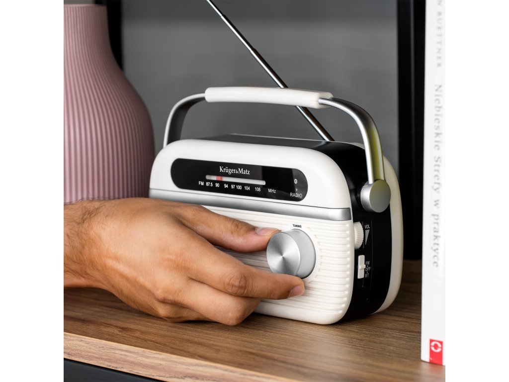 Kruger&Matz KM 826 je idealno rješenje za ljude koji traže jednostavno za upravljanje i istovremeno elegantno analogno radio. Ovaj uređaj će uljepšati vrijeme tijekom svakodnevnih aktivnosti, primjerice u kuhinji, kao i tijekom opuštanja na svježem zraku ili rada u vrtu.