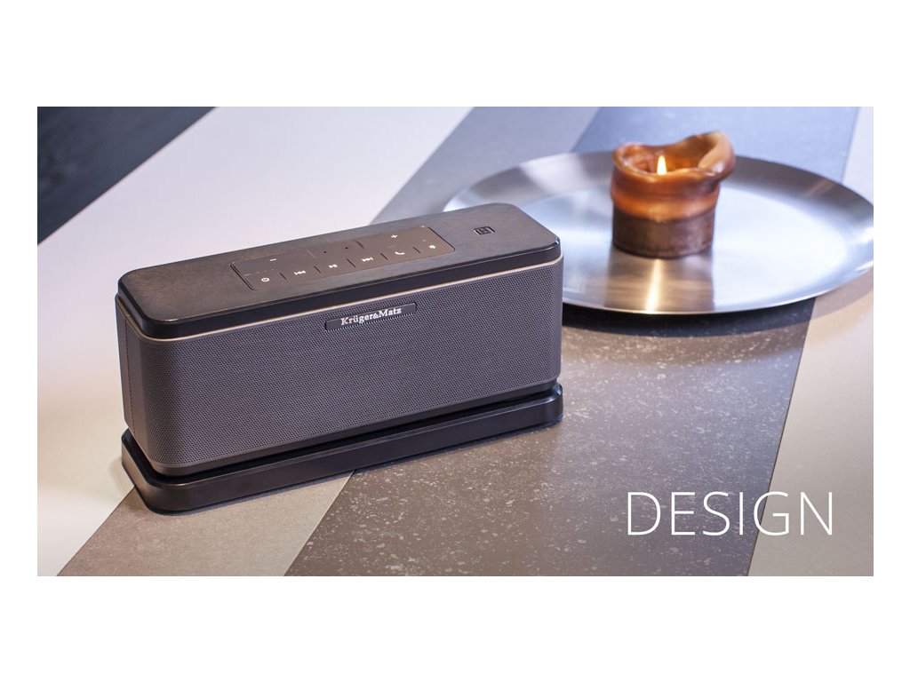 Snažan utjecaj Kruger&Matz Executive visokokvalitetni je prijenosni Bluetooth zvučnik s dva snažna 12,5 W zvučnika, koji će vas očarati svojim nevjerojatnim zvukom i čistoćom. Uporaba MaxxBass tehnologije dodatno će pojačati dinamiku niskih tonova, što će vas iznenaditi ne jednom. Za bežično povezivanje s drugim uređajem Executive koristi Bluetooth 4.0 tehnologiju s maksimalnim dometom od 30 m ili funkciju NFC, no ako želite slušati glazbu pohranjenu na drugom mediju, možete iskoristiti AUX ulaz. Prednost je svakako ugrađeni mikrofon, zahvaljujući kojem se Executive uređaj pretvara u hands-free set, i AUX izlaz koji se može koristiti za povezivanje drugog zvučnika. Vrijedi spomenuti i USB priključak, zahvaljujući kojem možete uređaj koristiti kao powerbank.