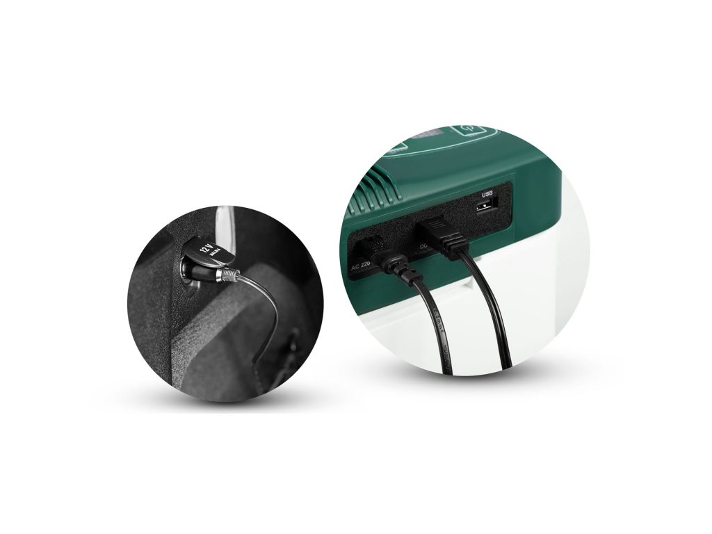 Hladnjak ima kabel za napajanje za utičnicu upaljača za cigarete i kabel za mrežno napajanje.