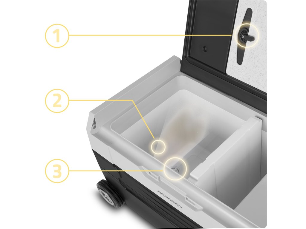 Zahvaljujući tome, putnici mogu prilagoditi rad hladnjaka vrsti pohranjenih proizvoda i okolišu te osigurati optimalne uvjete skladištenja na daljinu!