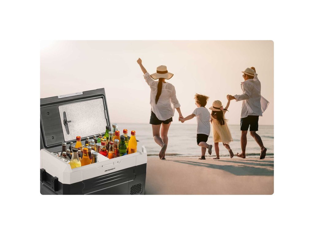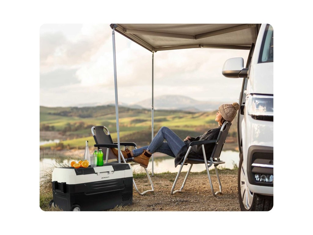 Zahvaljujući dodatno dugom (3,5 m) kabelu napajanja za cigaretni upaljač, možete prikladno spojiti hladnjak u utikač automobila dok se opuštate, npr.