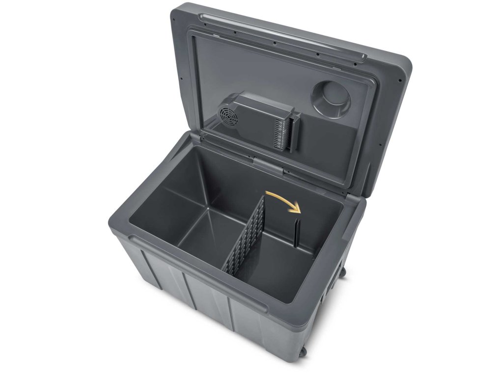 Turistički hladnjak - idealan za plažu, kamp ili kuću za odmor. Zahvaljujući dva ugrađena ventilatora, proizvodi u komori ravnomjerno se hlade.