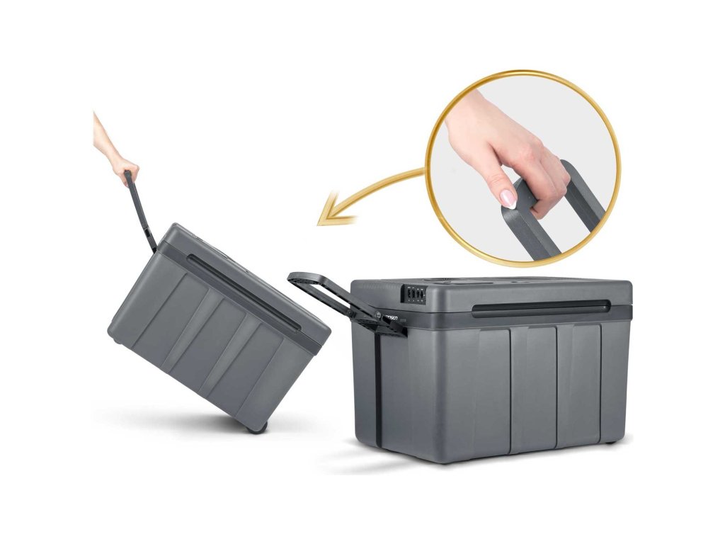 Hladnjak ima sklopivu ručku, koja olakšava njegovo premještanje na druga manja mjesta. Hladnjak ostaje topao do 3 sata (kada je isključen iz električne mreže), pa je odličan za logorsku vatru ili plažu!