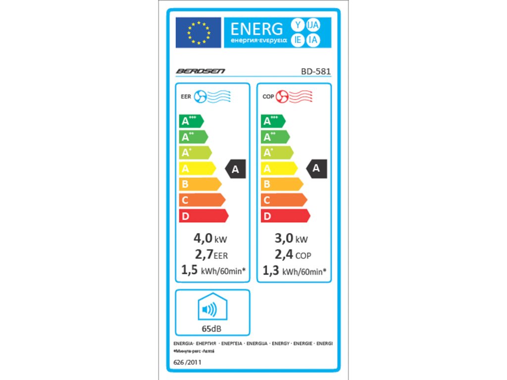 Klima uređaj BD-581 je kompaktni, profesionalni i funkcionalni uređaj s maksimalnom učinkovitošću 36 000 ml/dan. Radi tiho i učinkovito. Zahvaljujući visokoj energetskoj klasi, rashladit ćete svoje prostore i uštedjeti na energetskim troškovima.