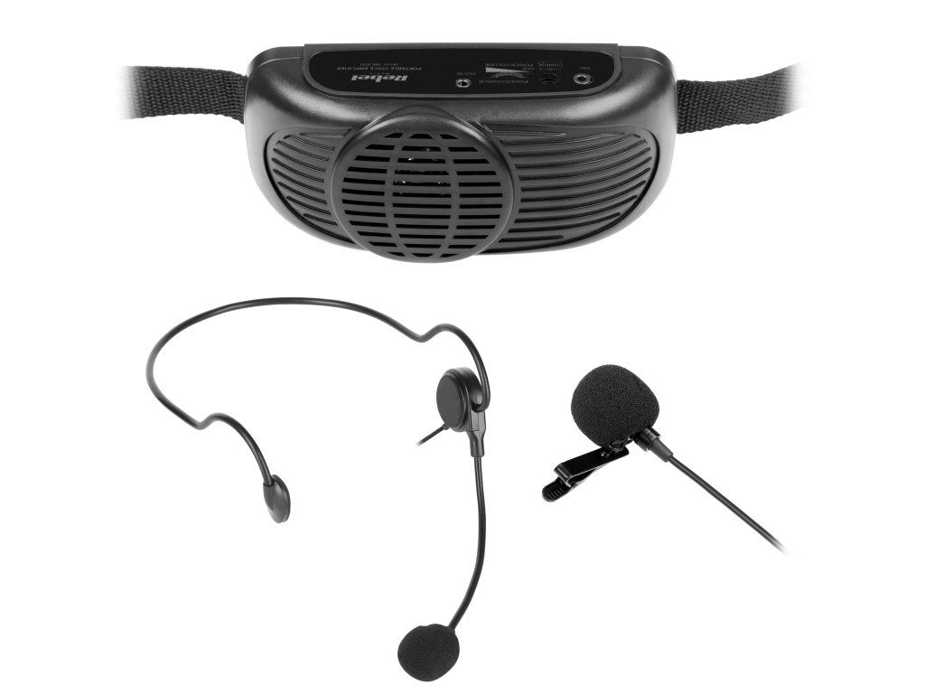 Sadržaj: pojačalo; mikrofon: glava, kvačica; punjač, nosač za remen